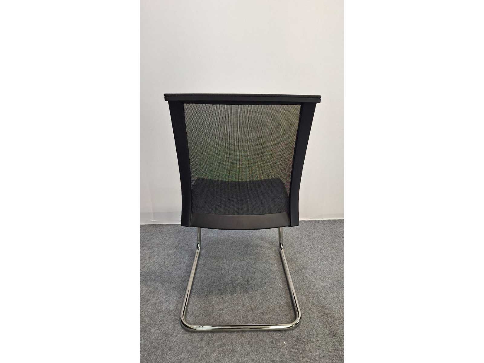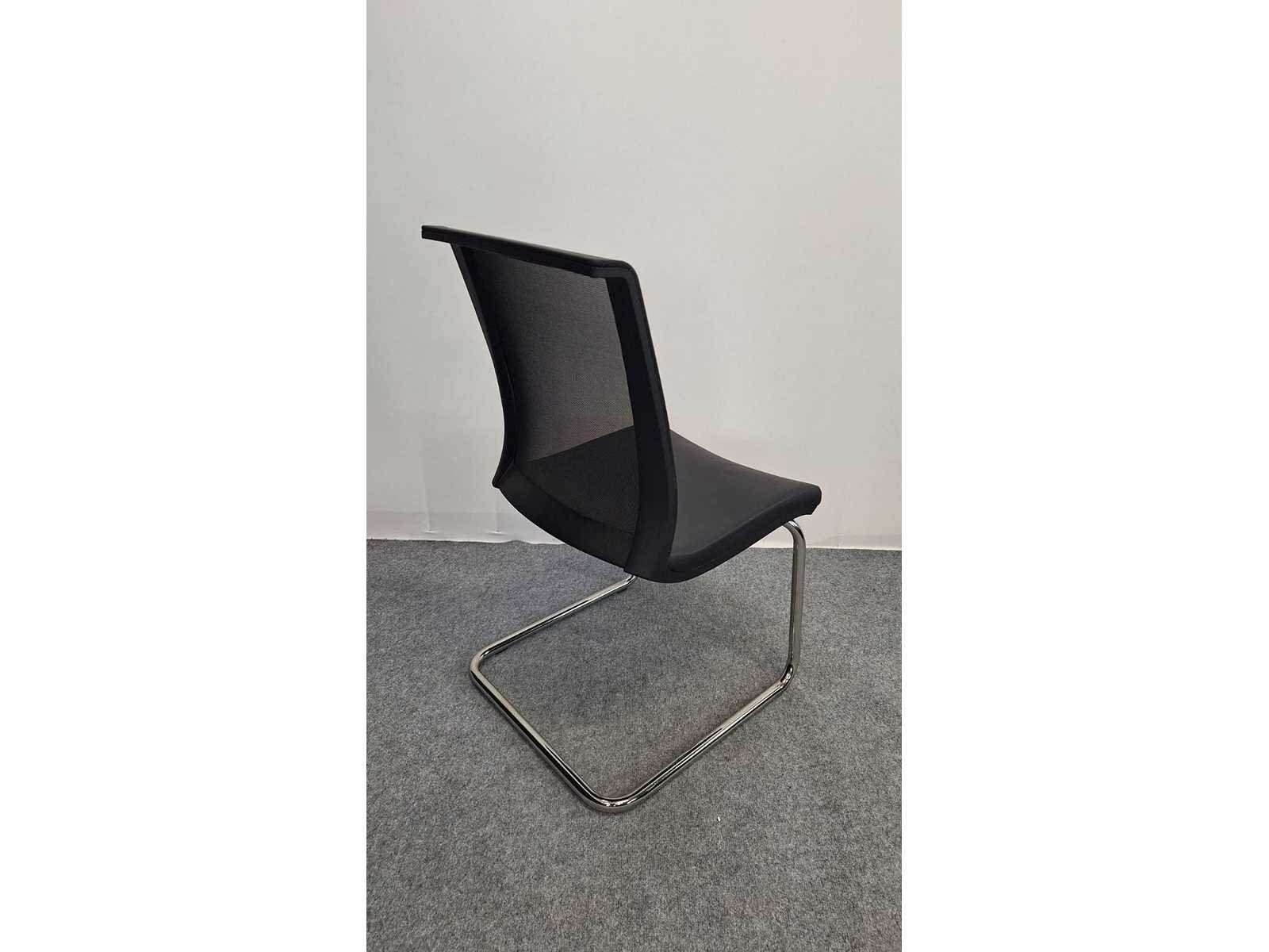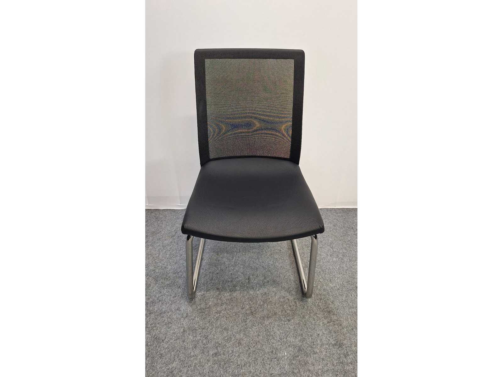 Slede onderstel in metaal hoogglans verchroomd, zitting in stof kleur Zwart, rugleuning in netweave kleur Zwart, in zeer goede staat Merk: Narbutas Kleur: Chroom - Zwart Materiaal: Metaal, kunststof, stof Zithoogte: 43cm Hoogte: 80cm Breedte: 50cm Diepte: 50cm Gewicht: 25kg