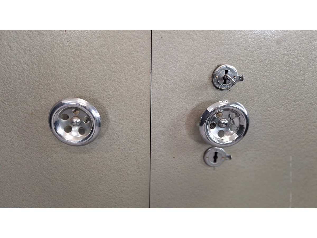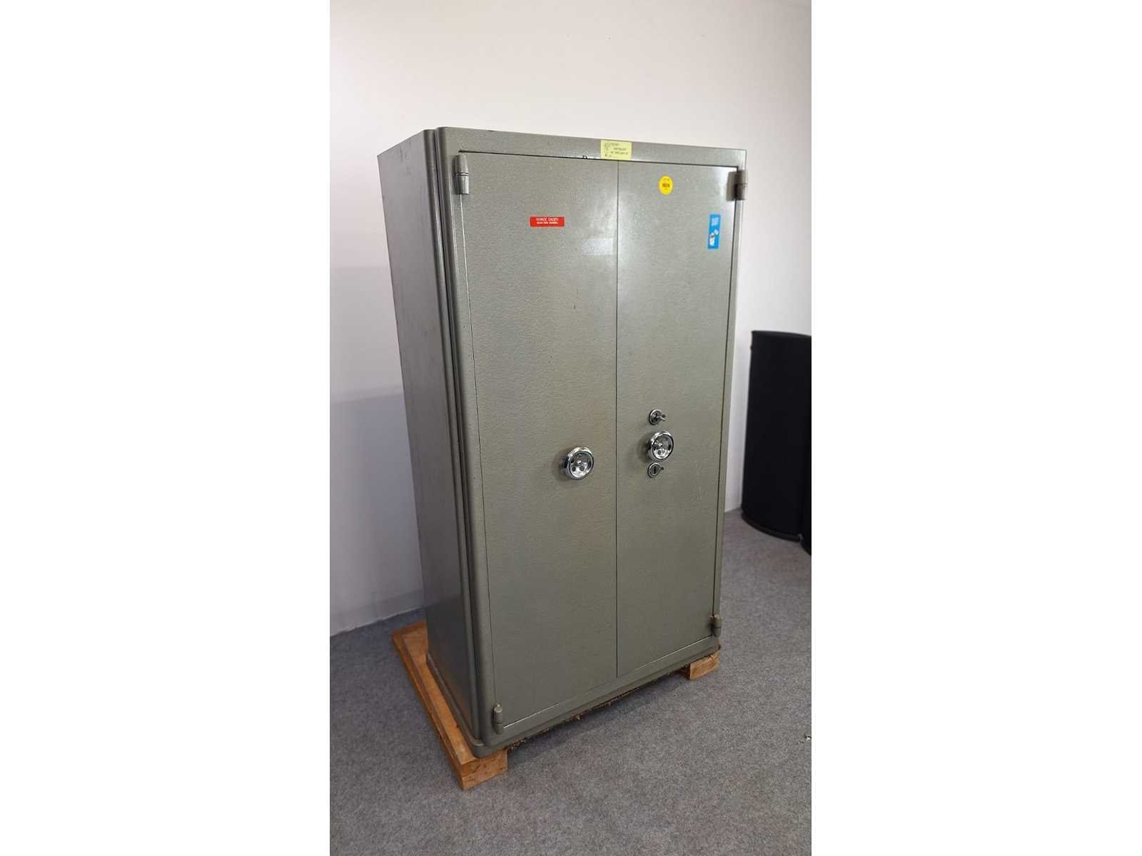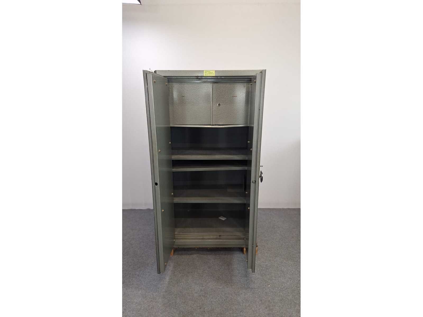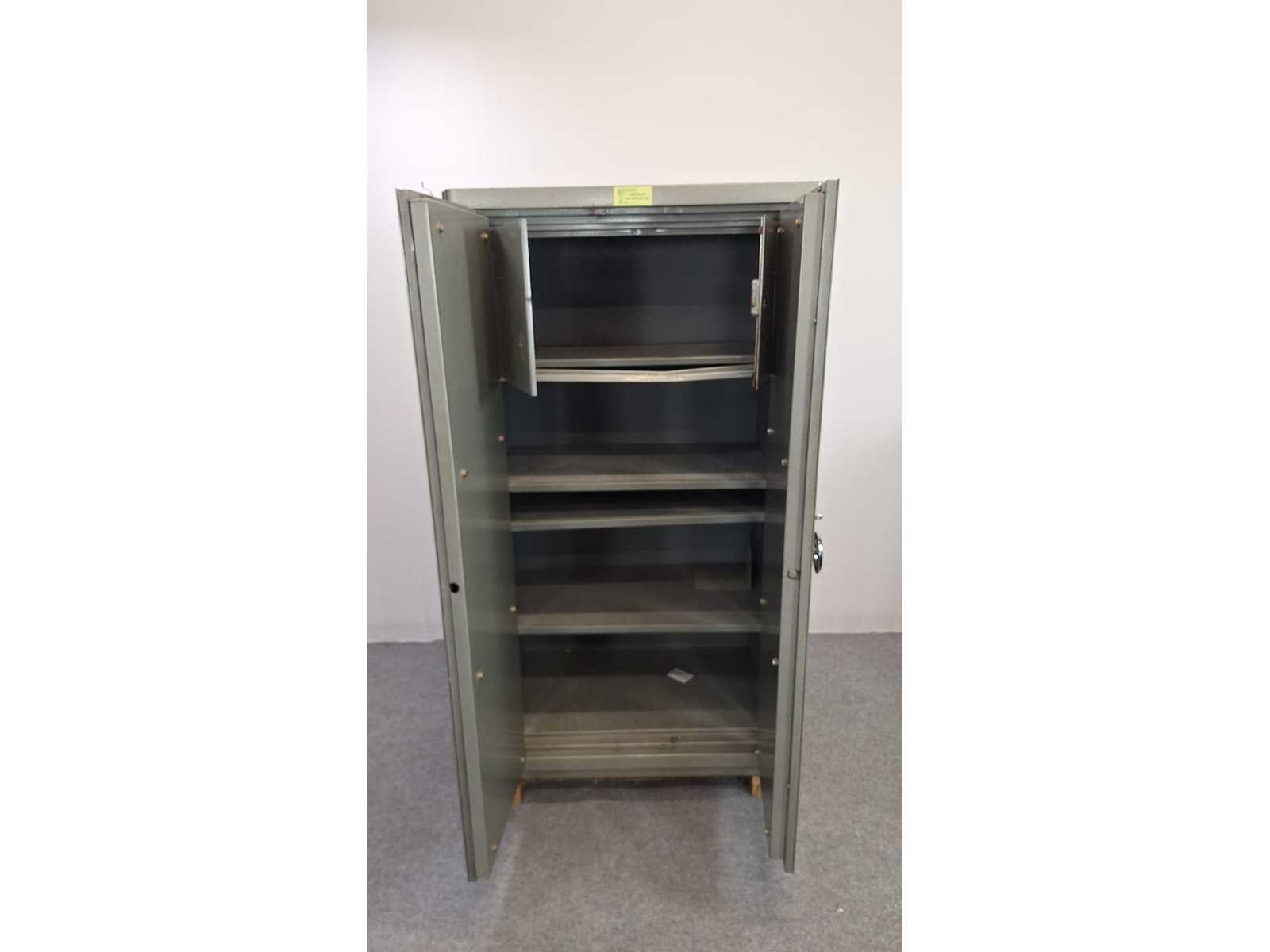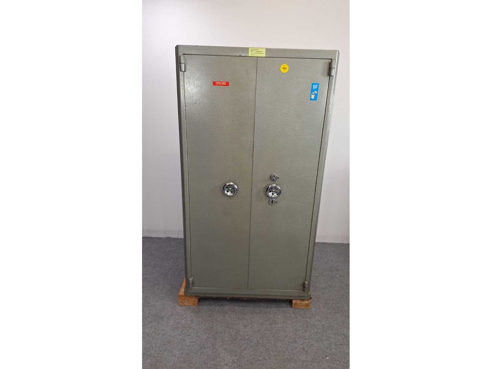 Kluis, compleet met sleutel, gebruikssporen aanwezig maar functioneel, binnen kluis beschadigd en sleutel ontbreekt, koper staat in voor belading vanaf laadkaai Kleur: Grijs Gewicht: 200kg Breedte: 100cm Hoogte: 180cm Diepte: 60cm Materiaal: Metaal