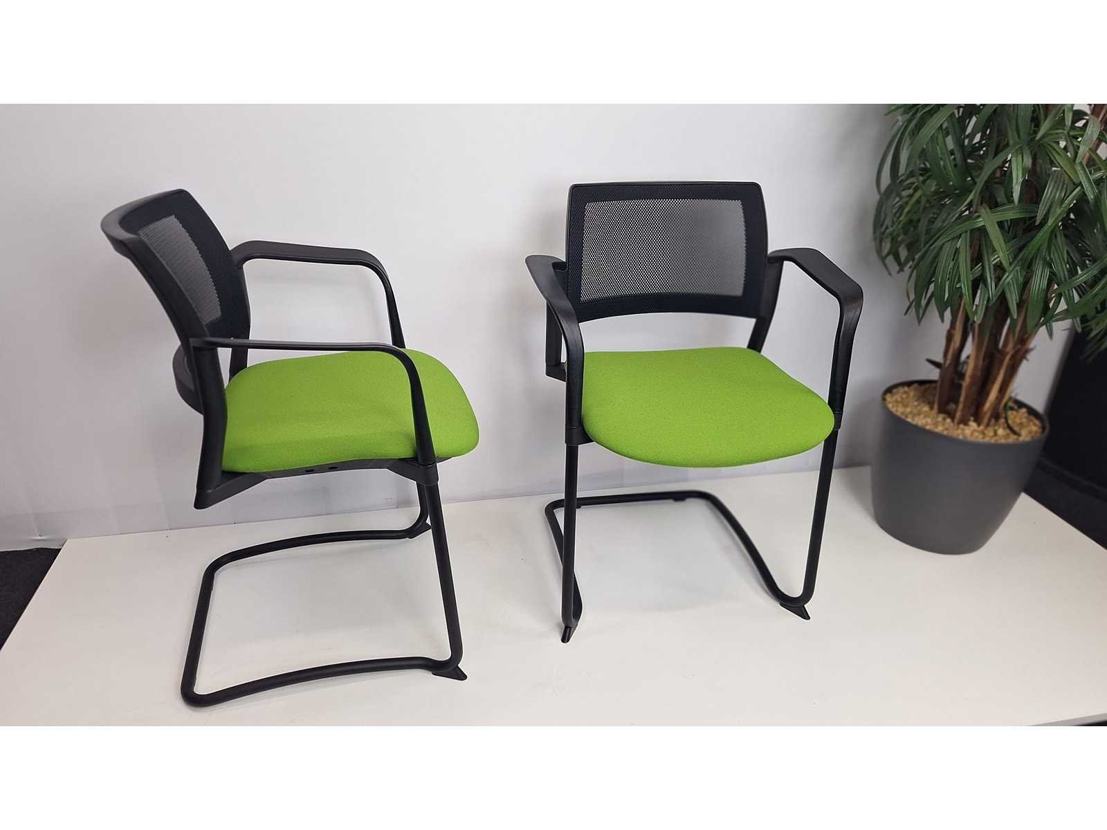 Sledeonderstel in metaal kleur Zwart, zitting bekleding in stof kleur Groen, rugleuning in netweave kleur Zwart, armleuningen in kunststof kleur Zwart, als nieuw Merk: Kyos Zithoogte: 42cm Hoogte: 79cm Breedte: 62cm Diepte: 50cm Gewicht: 25kg