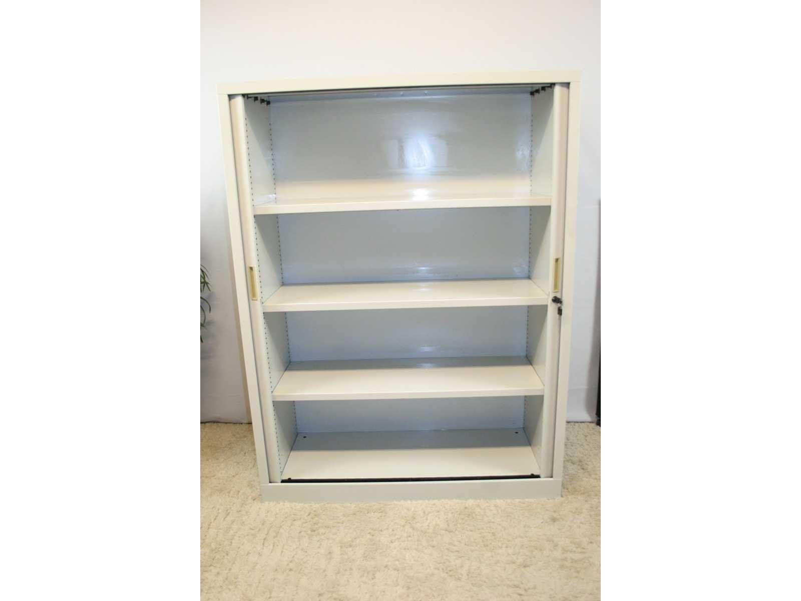 Kast volledig in metaal kleur grijs, roldeuren in kunststof kleur grijs, uitgerust met 3 legplanken in metaal kleur grijs, lichte gebruikssporen, sleutel niet gegarandeerd Merk: Robberechts Kleur: Grijs Gewicht: 50kg Breedte: 120cm Hoogte: 160cm Materiaal: Metaal, kunststof, aluminium Diepte: 45cm Aantal laden: 3