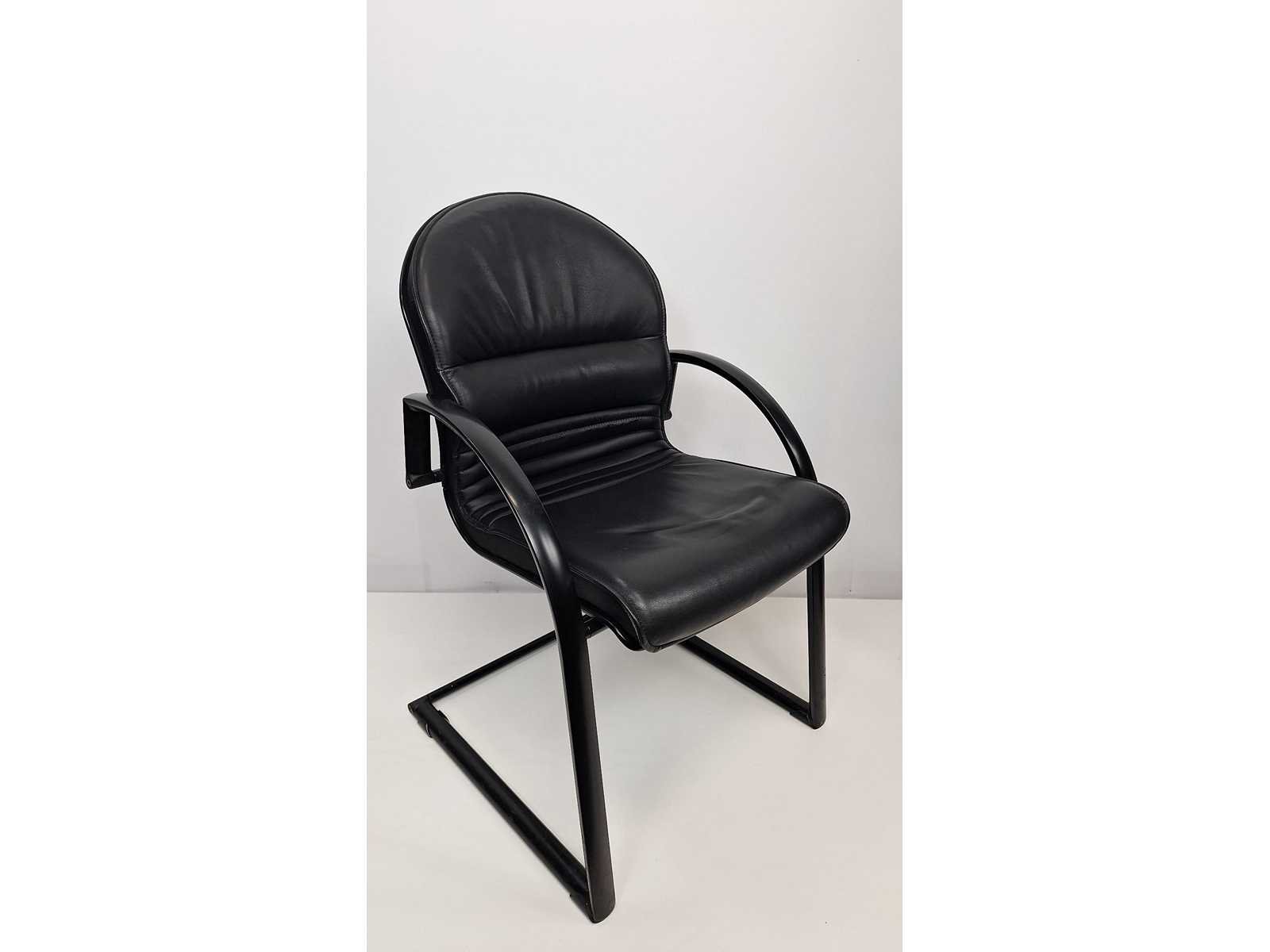 Sledeonderstel in metaal kleur Zwart, bekleding in leder kleur Zwart, in goede staat Merk: Giroflex Type: 33 Kleur: Zwart Materiaal: metaal, leder, kunststof Zithoogte: 43cm Hoogte: 900cm Breedte: 57cm Diepte: 50cm Gewicht: 100kg