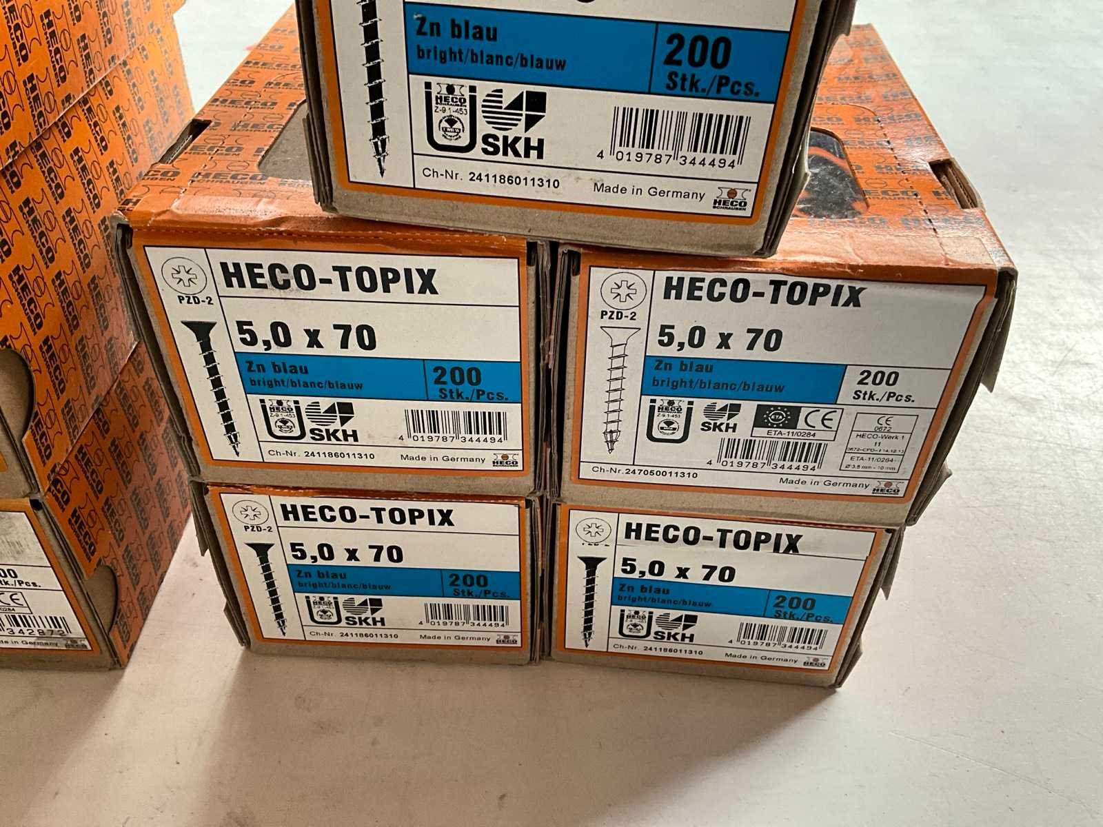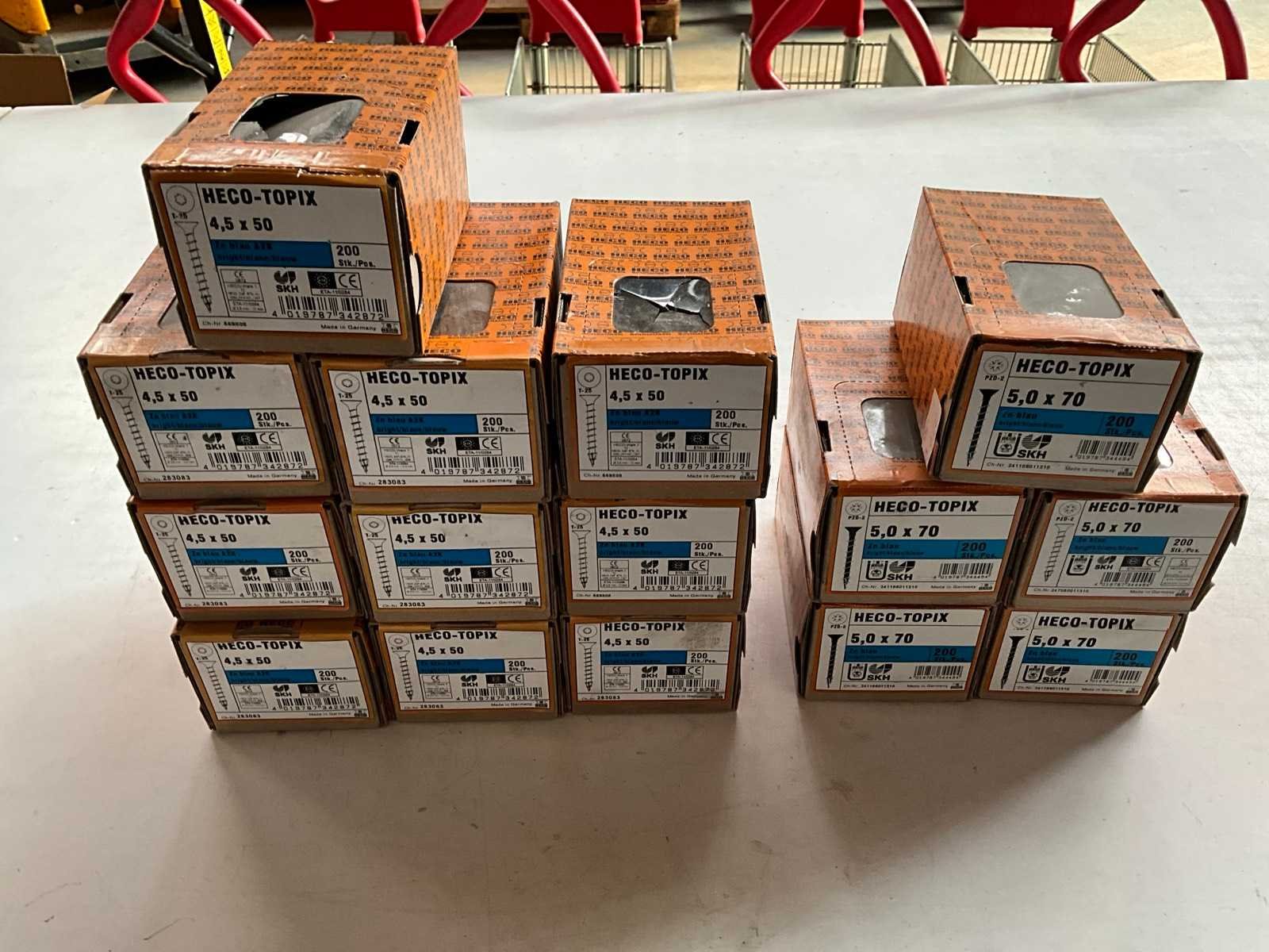 Kavel bestaande uit; 10x verpakking 200 stuks 4,5 x 50, 5x verpakking 200 stuks 5,0 x 70. Merk: Heco