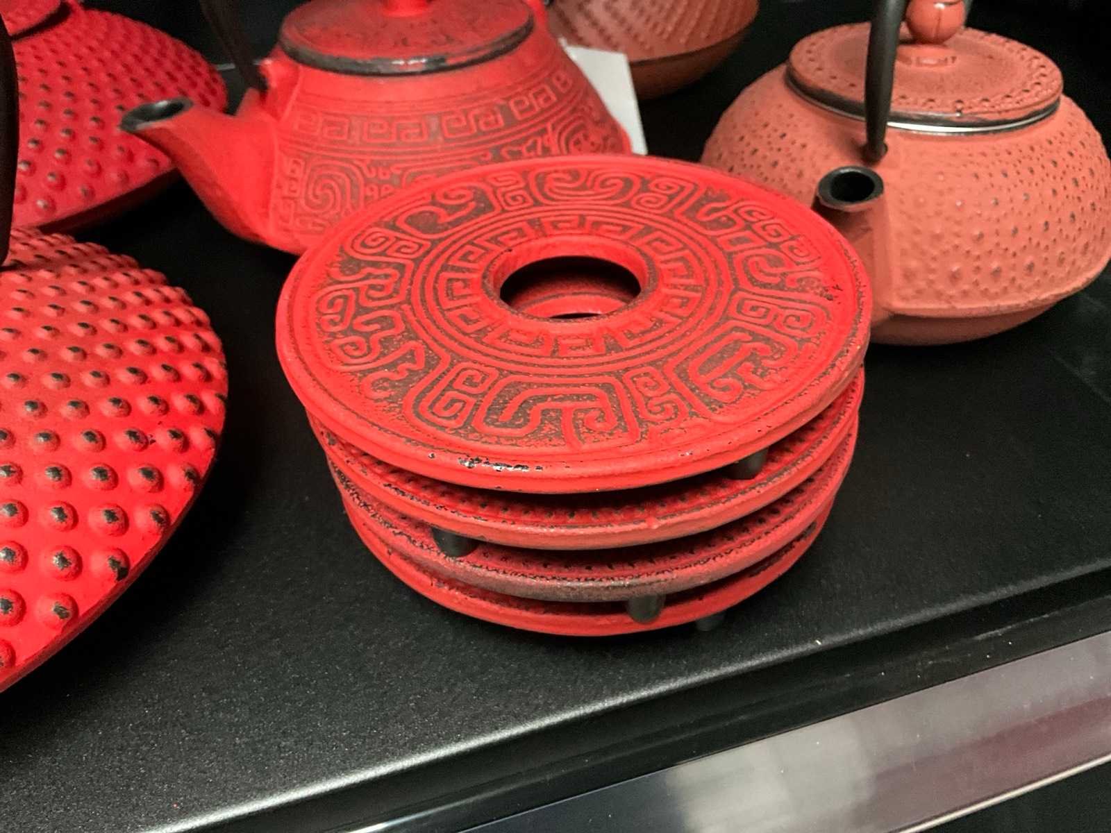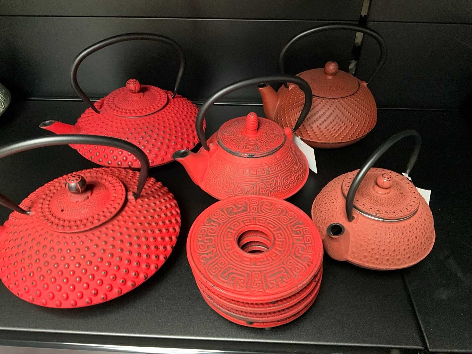 Bredemeijer gietijzeren theepotten + vier onderzetters (5x)