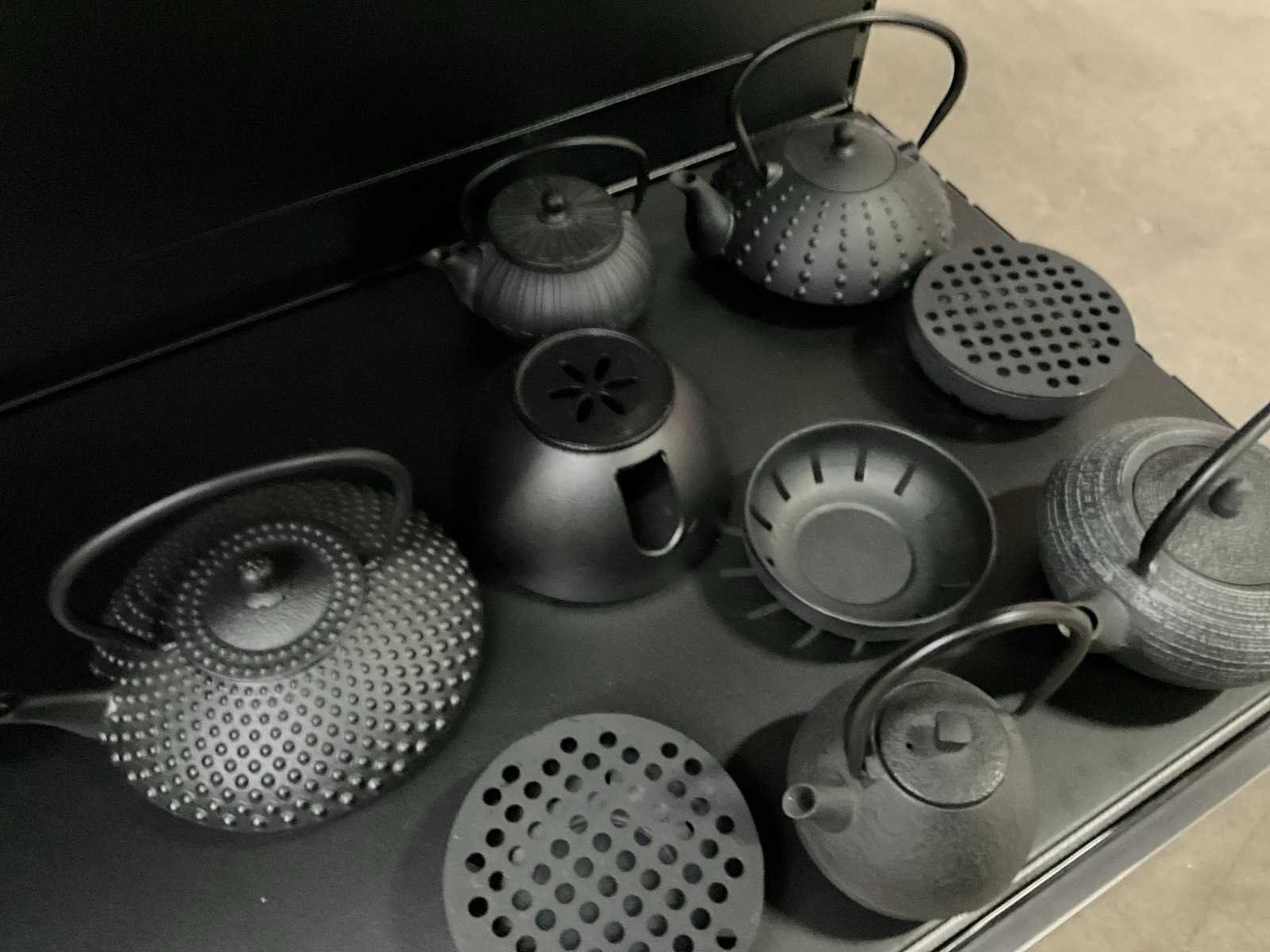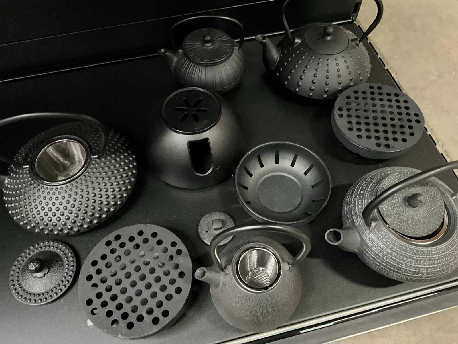 Bredemeijer gietijzeren theepotten + 4 onderzetters (5x)