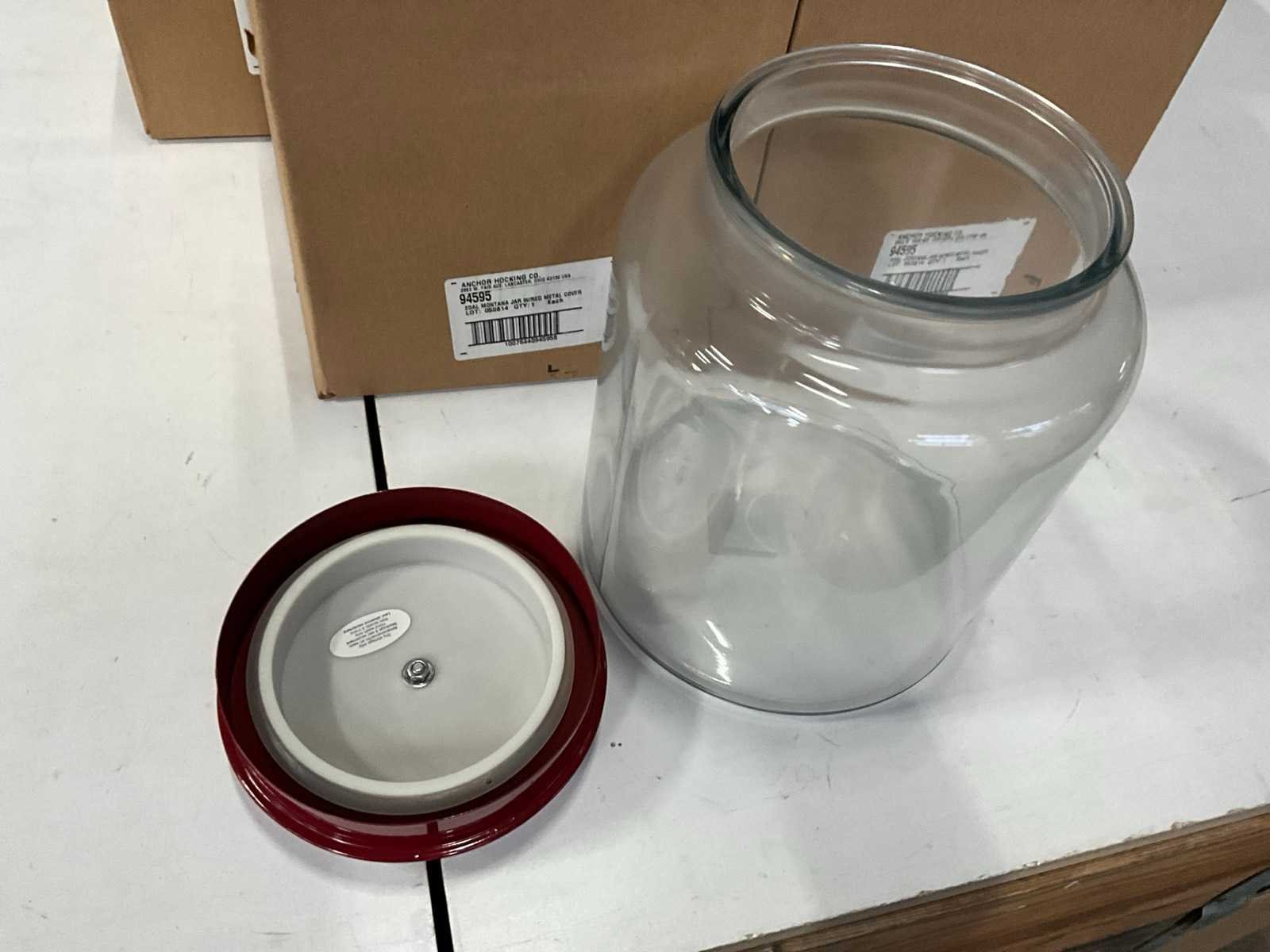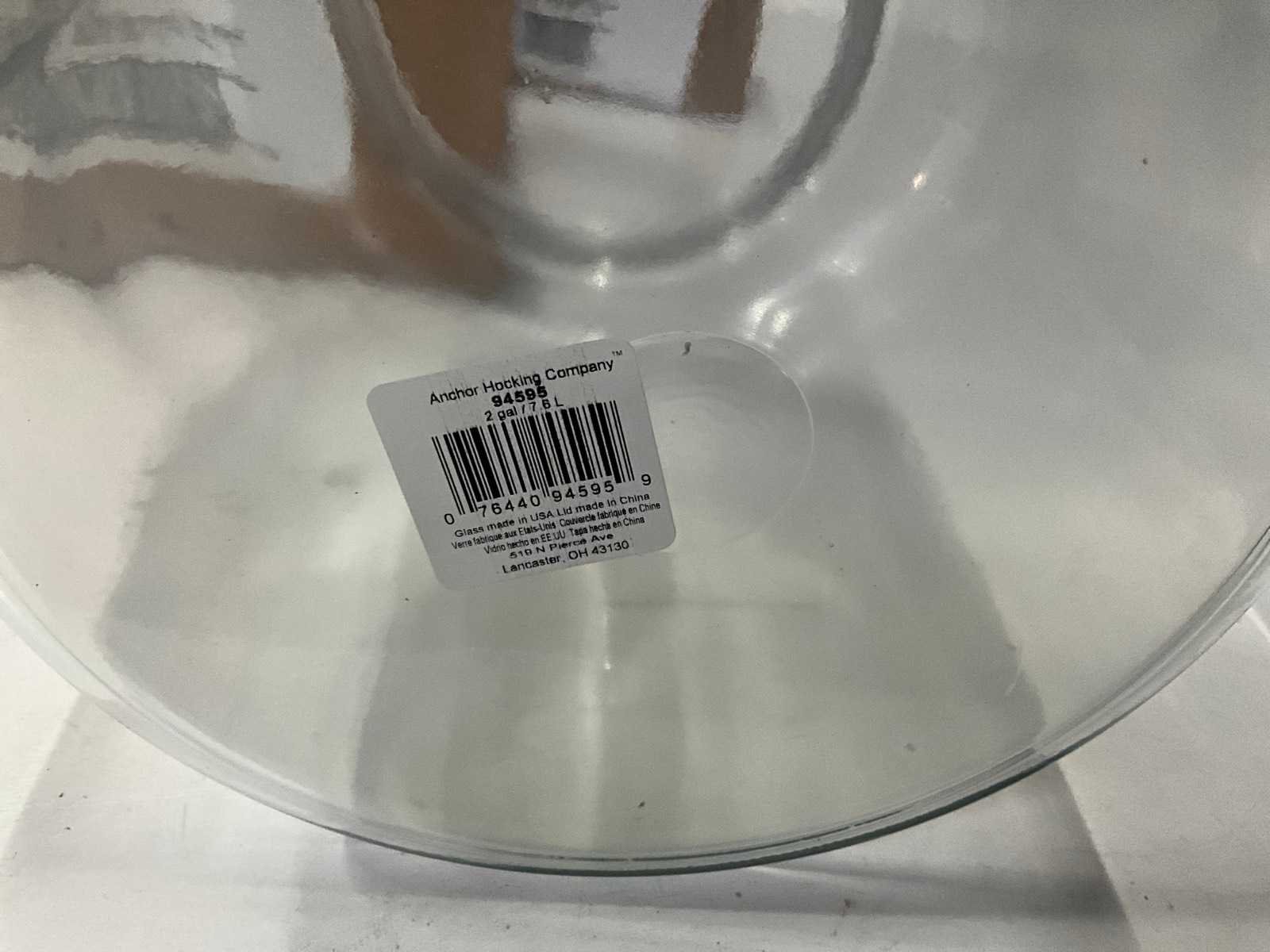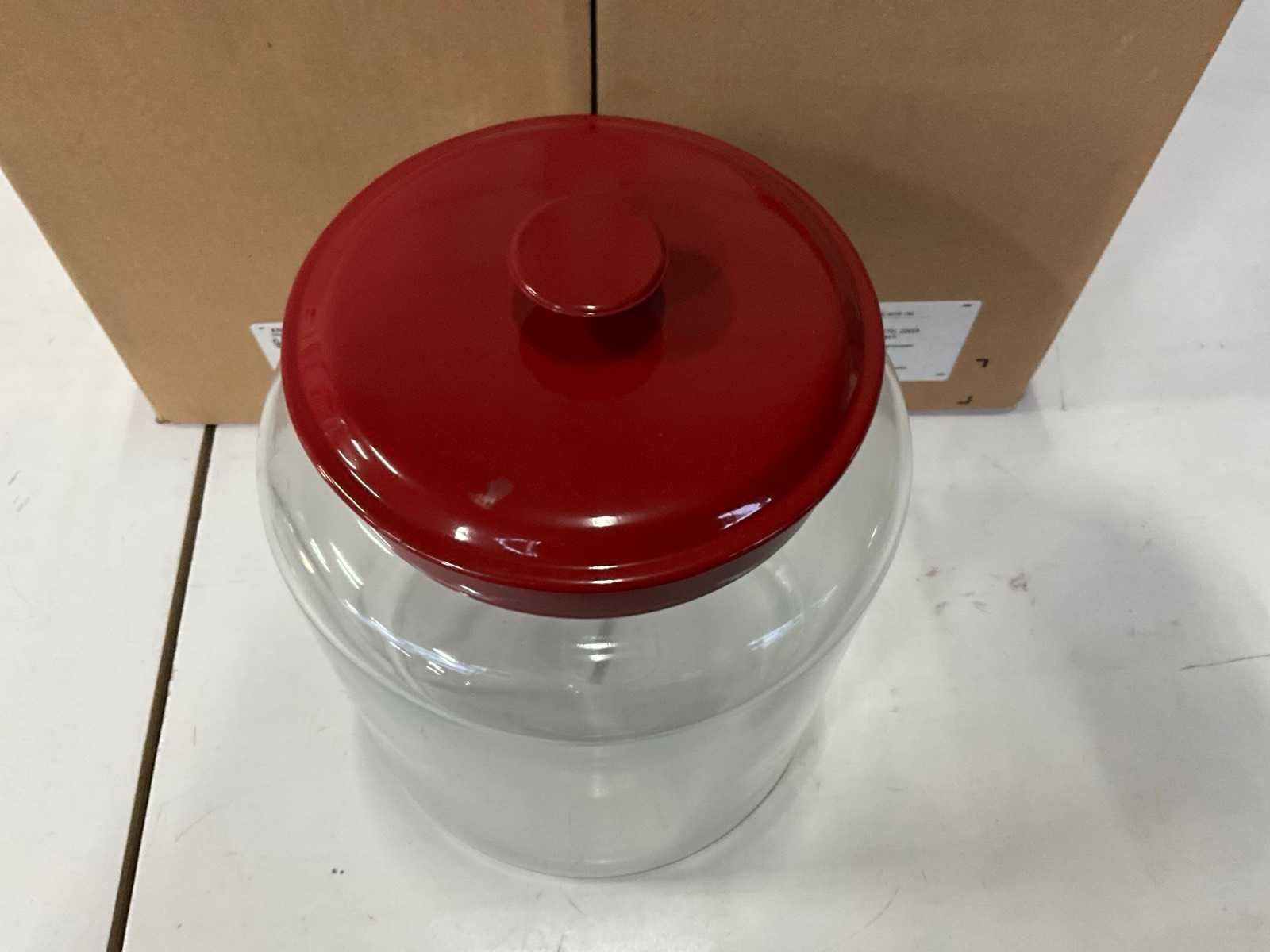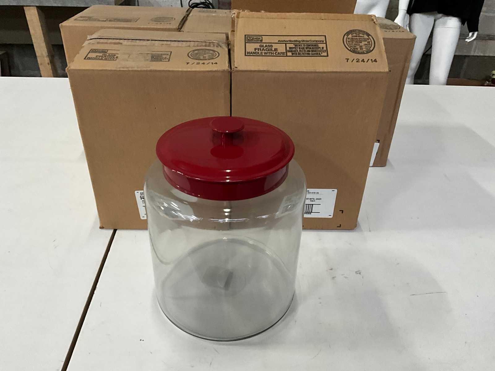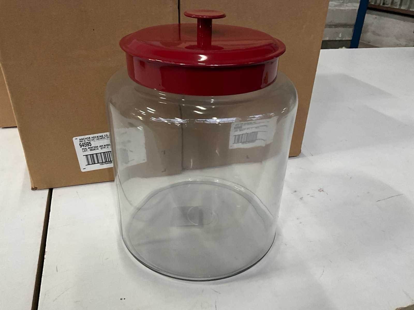 Merk: Anchor Hocking Model: Montana Kleur: Transparant, rood Lengte: 21.5cm Breedte: 21.5cm Hoogte: 29cm Materiaal: Glas, metaal