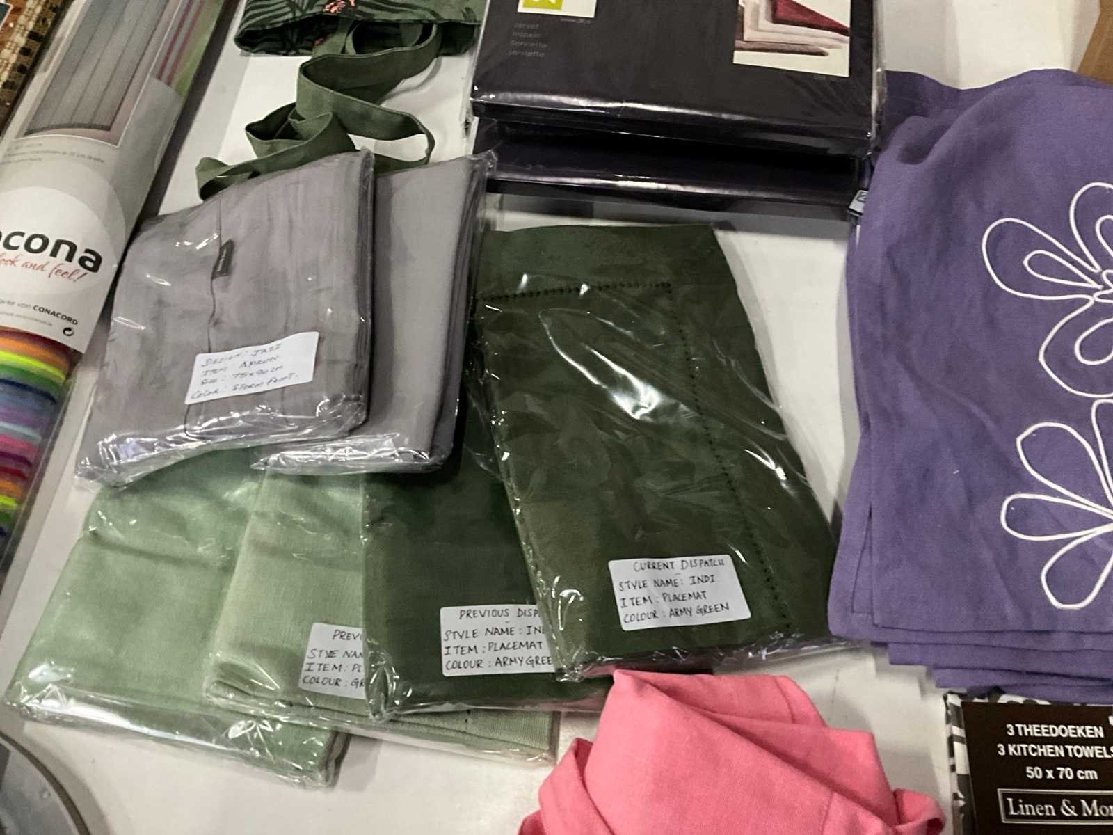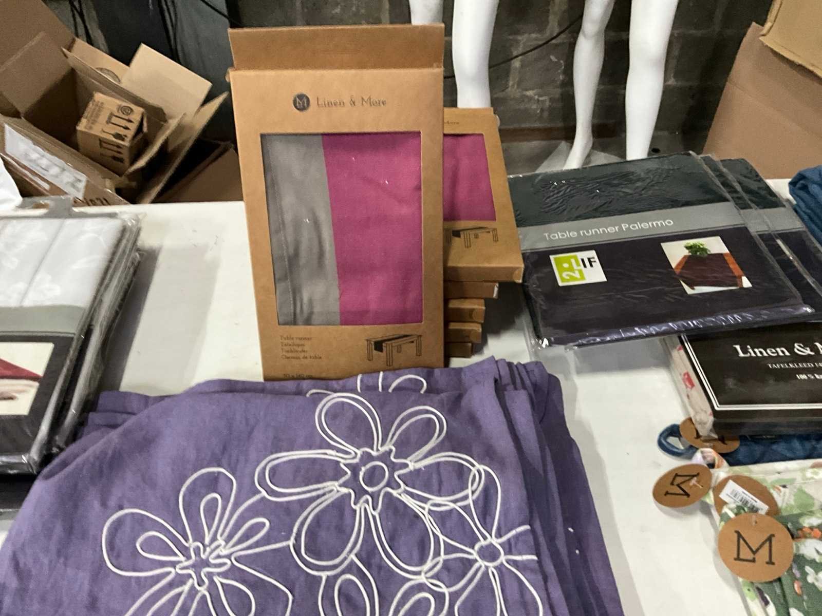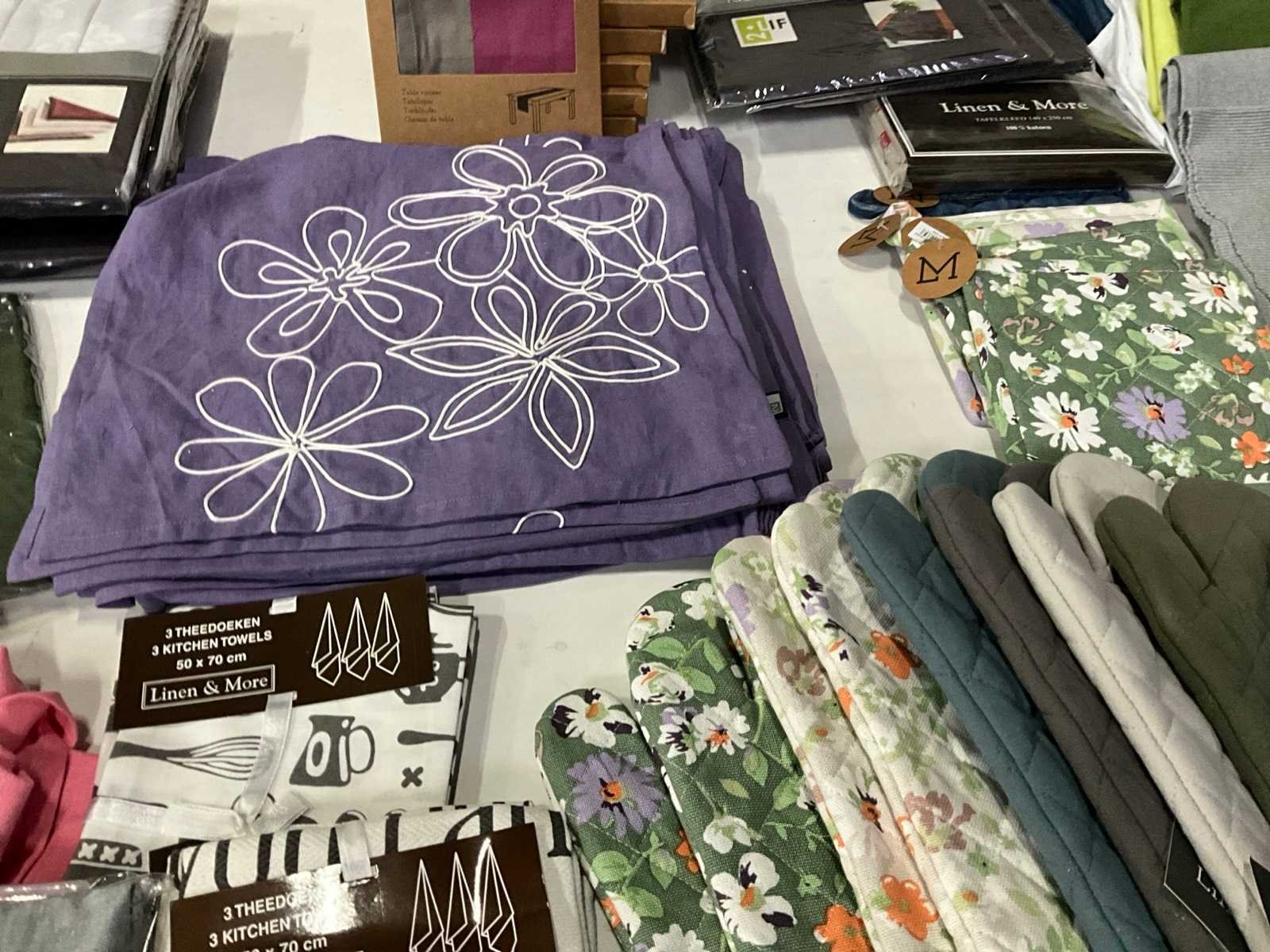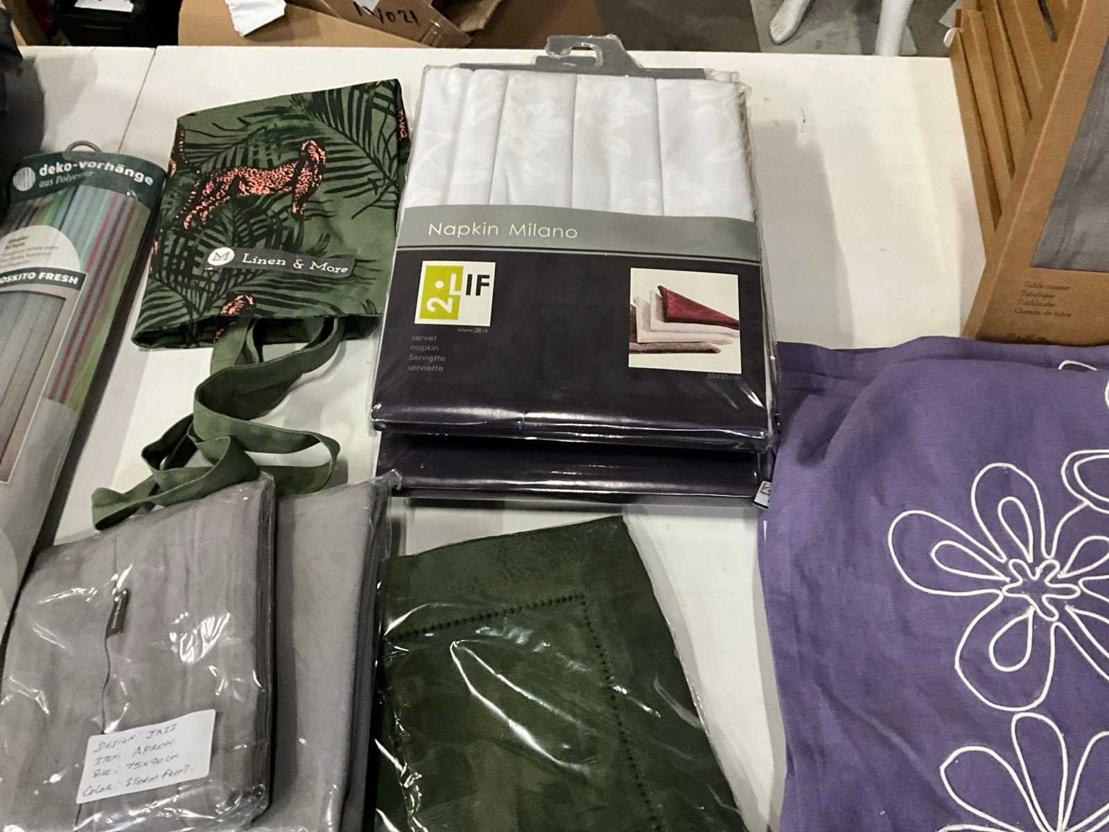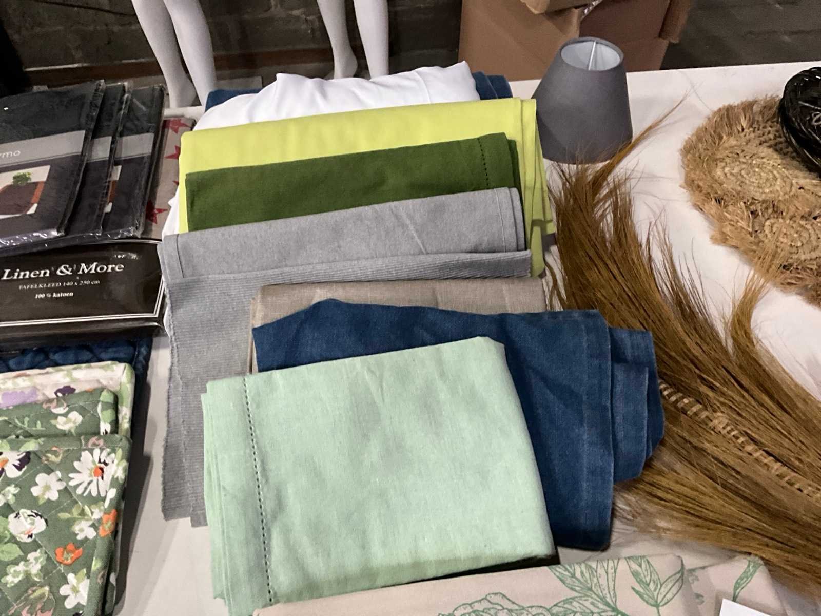 Kavel o.a. bestaande uit; deurgordijnen, keukentextiel, tafelkleden en tafellopers.