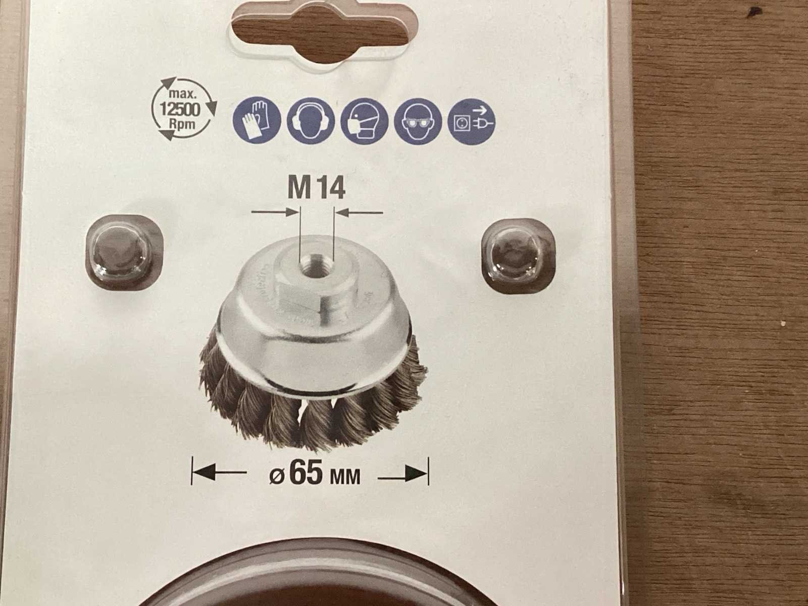 Komstaalborstel diameter 65 mm, vatting M14, draaddikte 0,5 mm, t.b.v. slijpmachine Merk: KWB Model: 719206