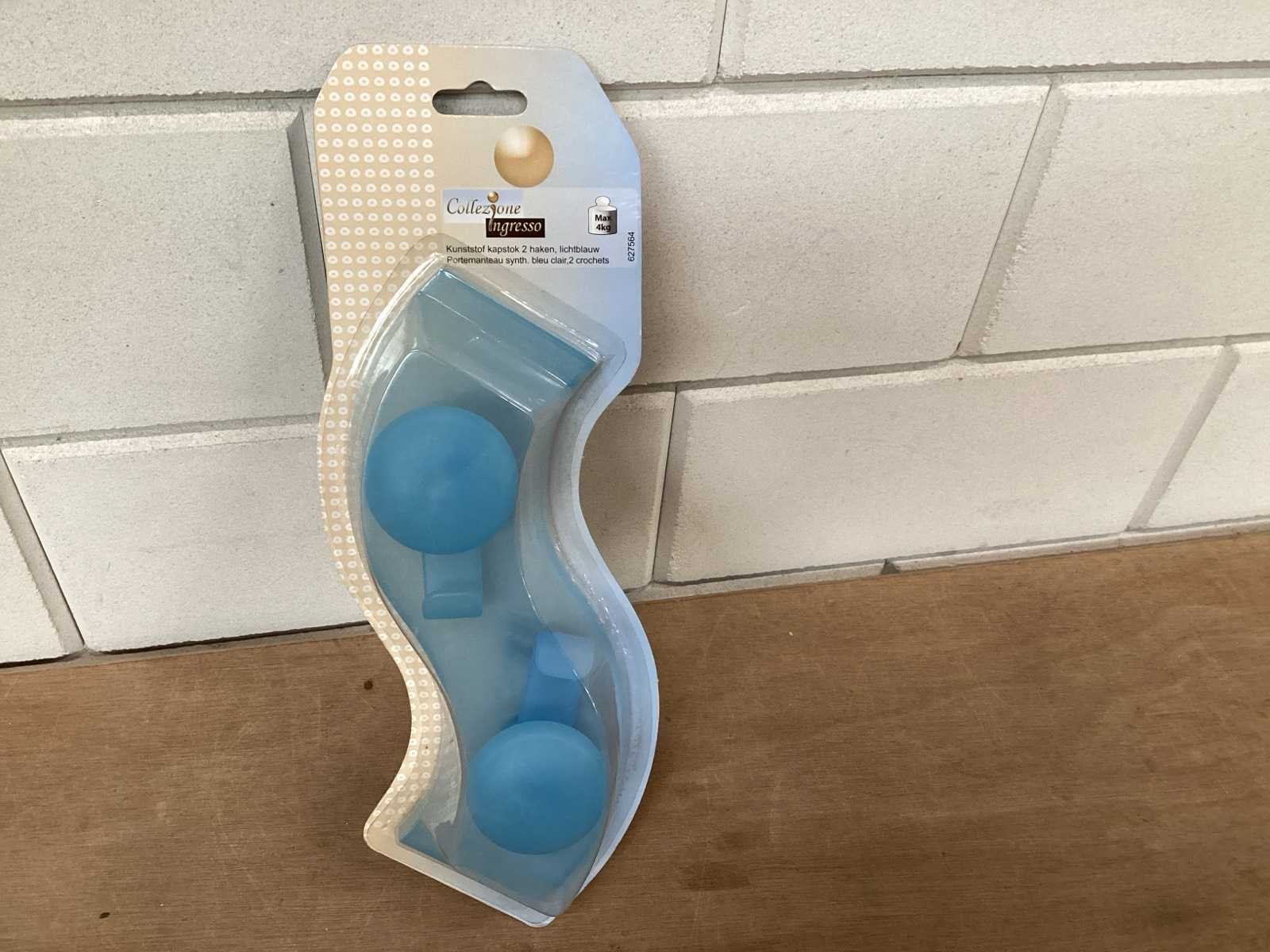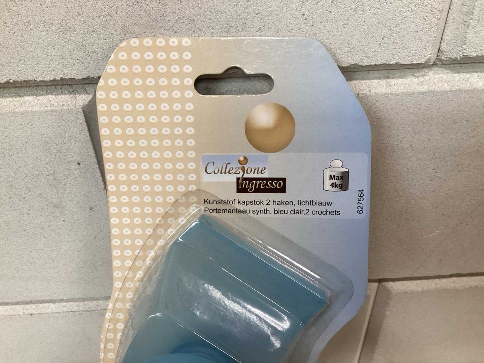Kunststof kapstok, 2 haken, lichtblauw, 4 kg belastbaar inclusief bevestigingsmateriaal Merk: Collezione Model: 627564