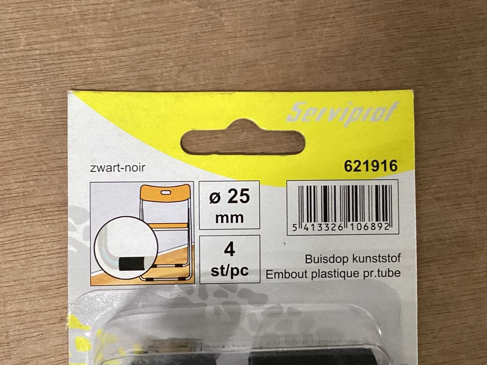 Buisdop zwart, opsteek, diameter 25 mm, verpakking 4 stuks