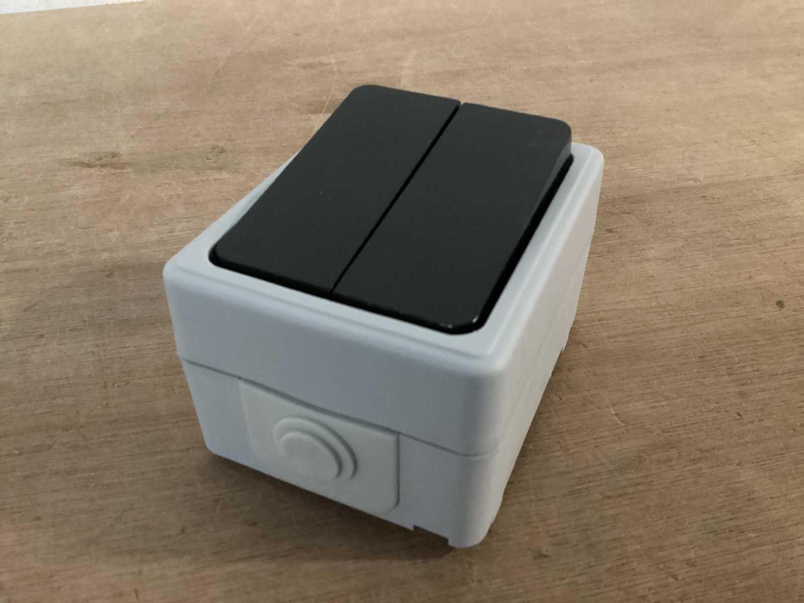 Dubbele serieschakelaar, spatwaterdicht, opbouw, grijs, max 2300 watt