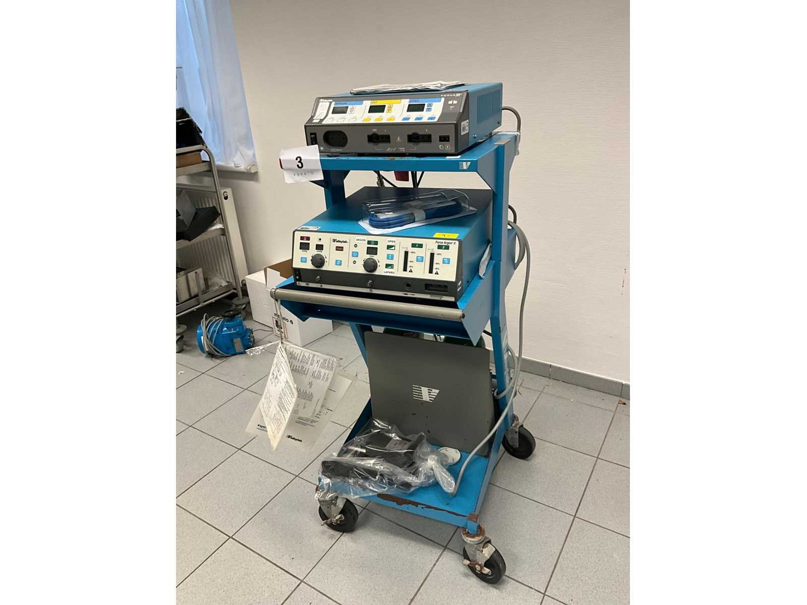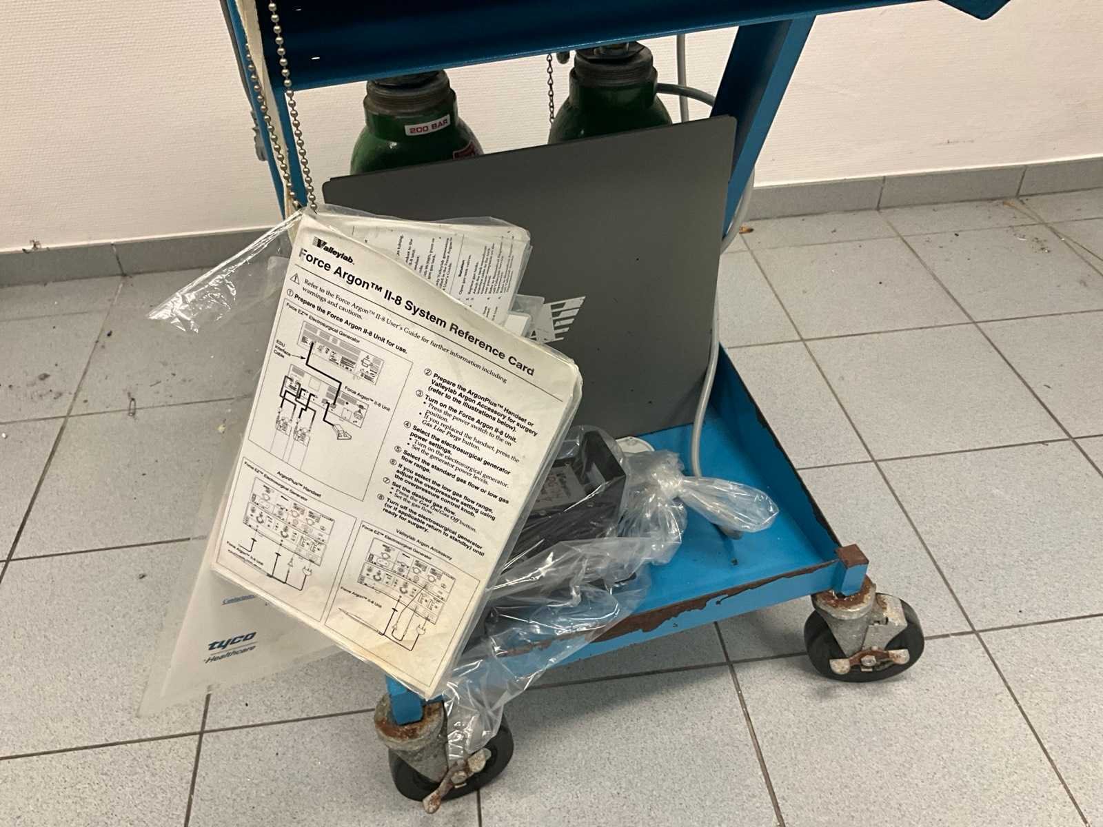 Op verrijdbare kar Valleylab met afmetingen:50x70x130cm Merk: Valleylab Model: Force Argon II-8