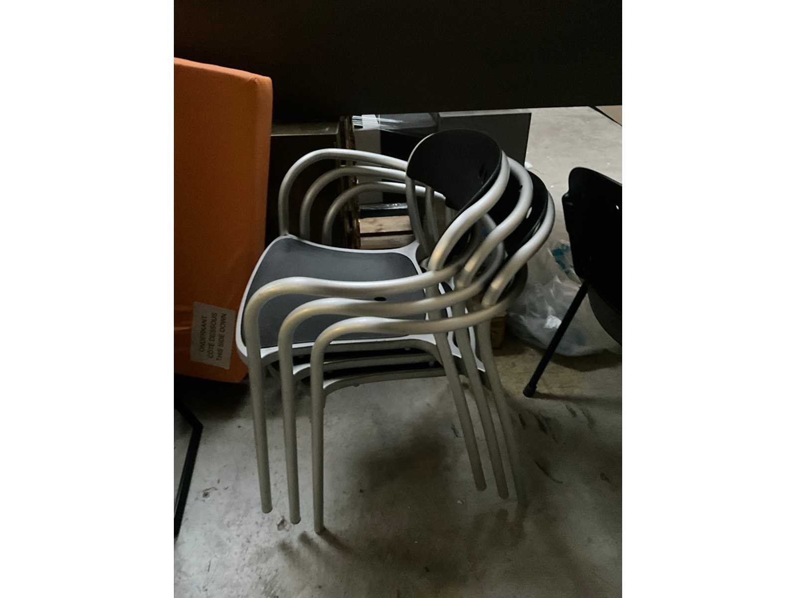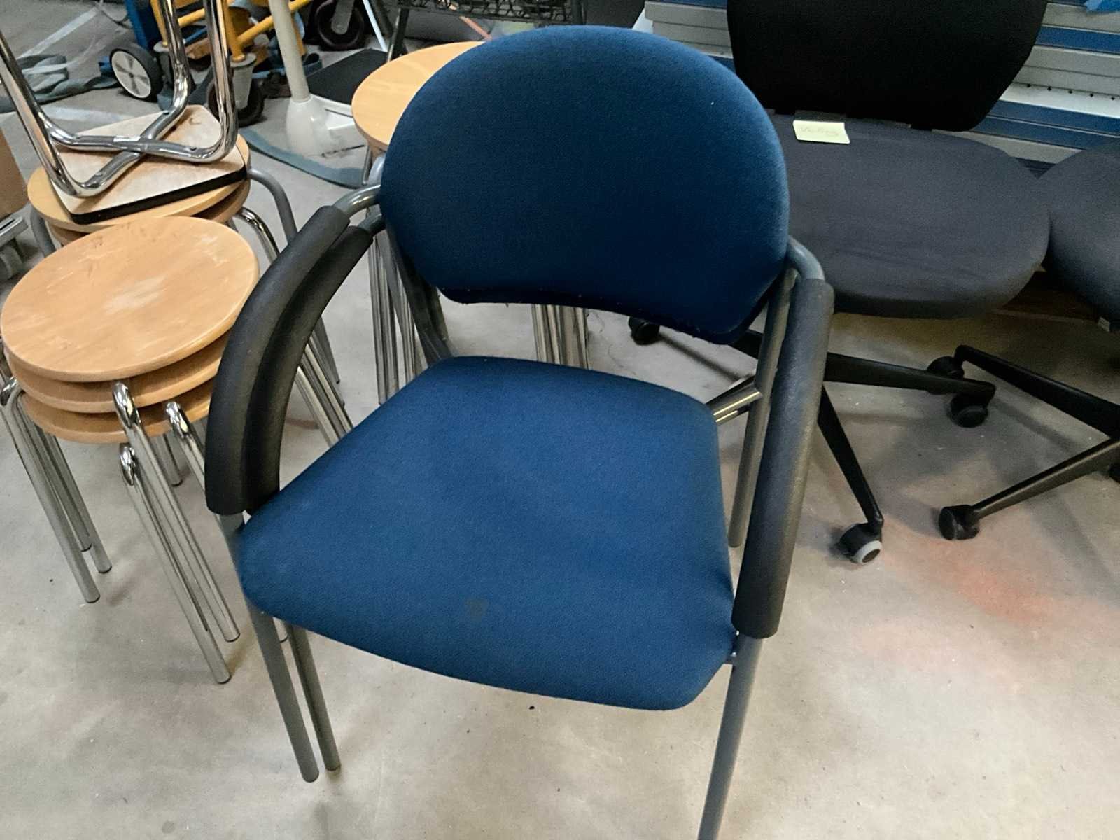 Waaronder 19x kruk voorzien van houten zit en metalen poten, 3x bureaustoel en 6x stoel waaronder 3x met metalen poten en kunststoffen zitting