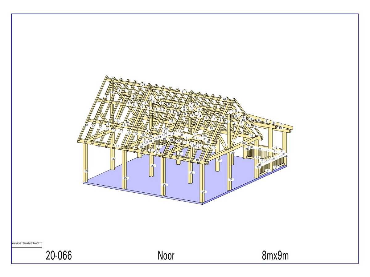 <li>Totaal afmeting pakket: ca. 6400 x 1200 x 1000 mm </li><li>Kopmaat liggers: 230x180mm, 180x60 mm, 130x130 mm, 89x38 mm en 80x70 mm </li><li>Aantal draagsteunen: 20 stuks </li><li>Kopmaat staanders 180x180 mm </li><li>Referentie: Noor </li><li>Handleiding opbouw: aanwezig met QR code </li><li>Staat: ongebruikt, bouwpakket</li> Model: 20-066 Gewicht: 3000kg Lengte: 900cm Breedte: 800cm Hoogte: 550cm Materiaal: Fijnspar