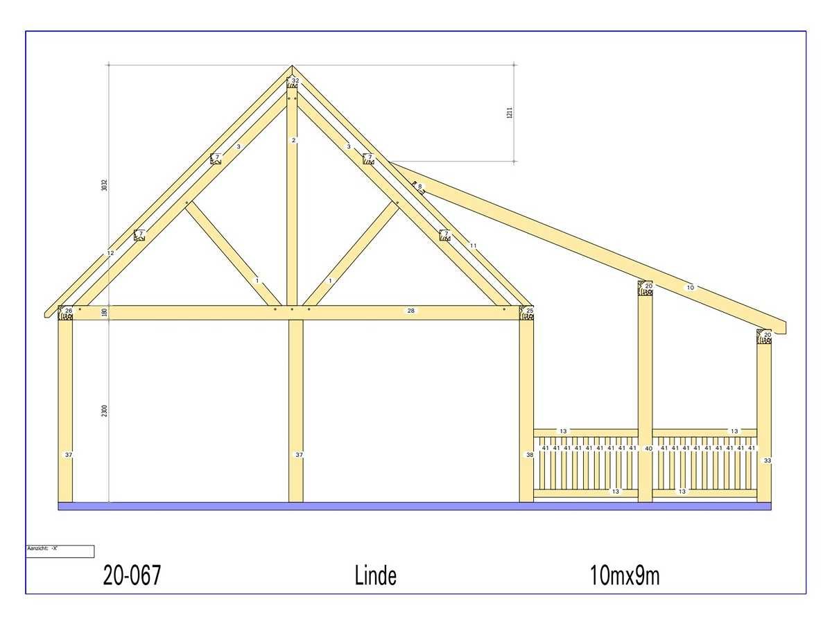 <li>Totaal afmeting pakket: 2 x circa 6400x1200x1000 mm </li><li>Kopmaat liggers: 230x180 mm, 130x130 mm, 180x60 mm, 89x38 mm, 80x70 mm </li><li>Aantal draagsteunen: 23 stuks </li><li>Kopmaat staanders 180x180 mm </li><li>Referentie: Linde </li><li>Handleiding opbouw: aanwezig met QR code </li><li>Staat: ongebruikt, bouwpakket</li> Model: 20-067 Gewicht: 4000kg Lengte: 1000cm Breedte: 900cm Hoogte: 550cm Materiaal: Fijnspar