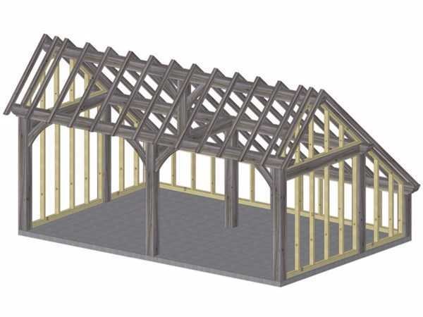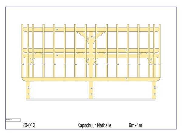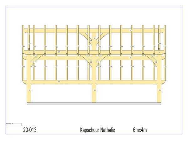 Pakket: ca. 6400 x 1200 x 1000 mm - Wood sections: 180 x 180 - 130 x 130 - 180 x 60 - 89 x 38 - 80 x 70 - Ref: Nathalie Model: 20-013 Gewicht: 1200kg Lengte: 640cm Breedte: 400cm Hoogte: 346cm Materiaal: Fijnspar