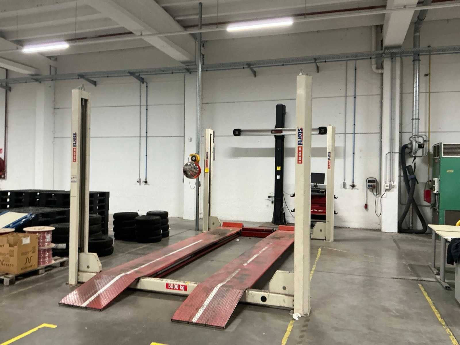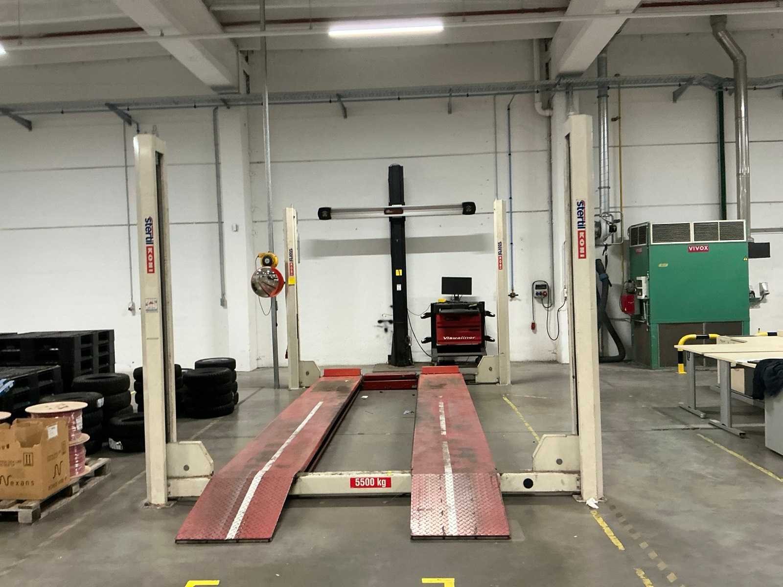 Inclusief wiel-uitlijnapparaat “ John Bean” en bijhorende sturingkast Merk: Sertil Koni Type: ST-4055 Serienummer: 10109650 4-koloms: true Capaciteit.: 5500kg Vermogen: 5.5kW Aansluiting: 400V Totale afmeting L: 5500mm Totale afmeting Breedte: 3000mm Totale afmeting Hoogte: 2750mm