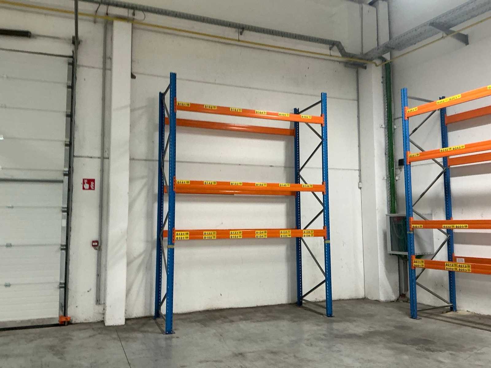 Opgedeeld in 2 delen/ Afmeting staanders: 110 x 300cm; lengte liggers: 270cm en 360 / voorzien van roosterlegborden Aantal staanders: 4 Aantal liggers: 14 Geconstrueerd: true