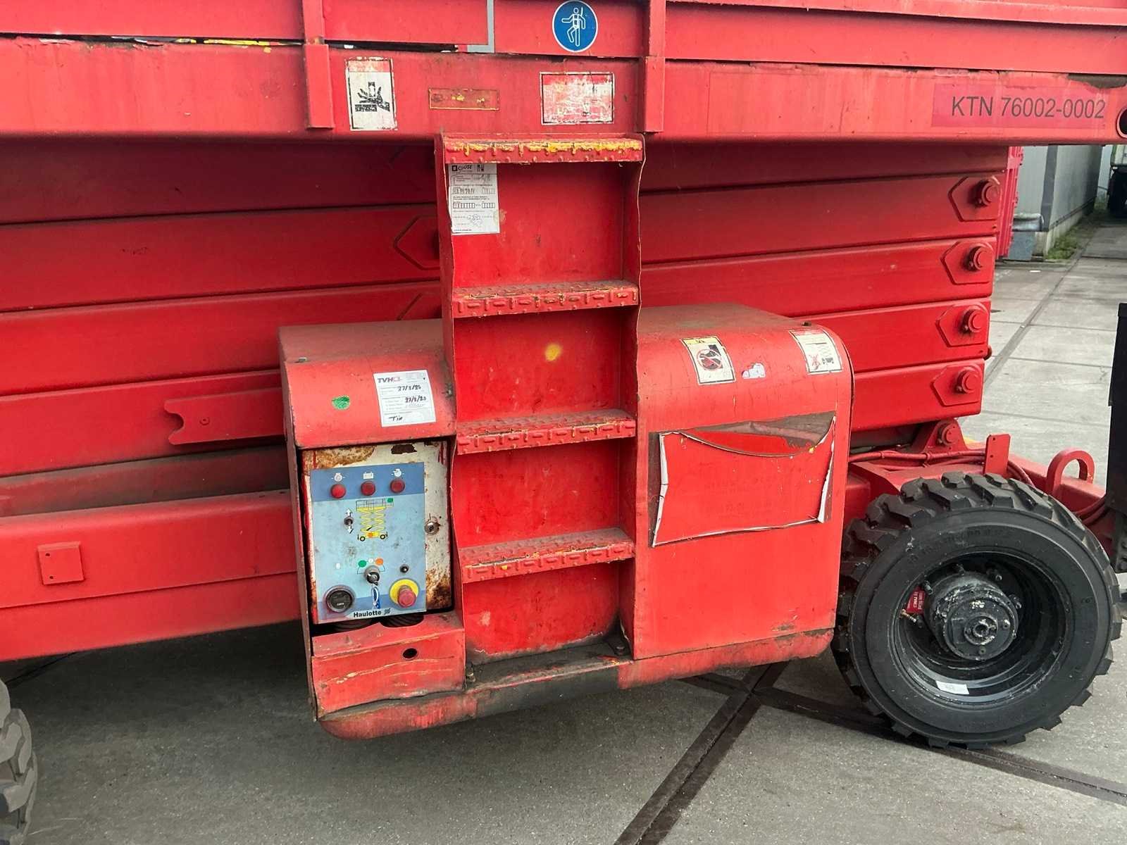 Voorzien van 4 uitschuifbare steunpoten. Plateau aan 2 kanten circa 1000 mm uitschuifbaar Merk: Haulotte Type: H18SX Bouwjaar: 2004 Serienummer: CD106570 Diesel: true Motorvermogen (kW): 24kW Schaarhoogwerker: true Werkhoogte: 18000mm Plateau afm. l: 3900mm Plateau afm. b: 1900mm Platform capaciteit: 500kg Afgelezen urenstand: 2875 Eigen gewicht: 7300kg Totale afmeting L: 4120mm Totale afmeting Breedte: 2250mm Totale afmeting Hoogte: 2950mm