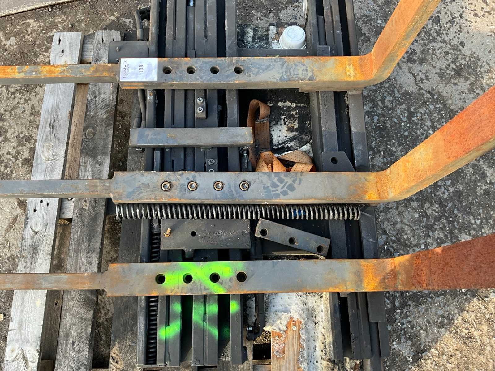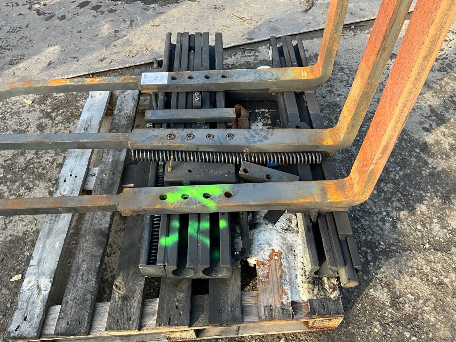 Hefvermogen 2400 kg, vorkenlengte 1200 mm, 1 vork ontbreekt!!!, voorzien van hydraulisch viervorken verstelling, side shift, ophanging 3A Merk: Griptech Type: DVV 24 S Bouwjaar: 2018 Eigen gewicht: 508kg Totale afmeting L: 1400mm Totale afmeting Breedte: 1740mm Totale afmeting Hoogte: 1400mm