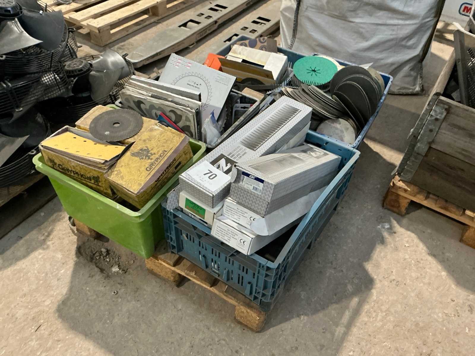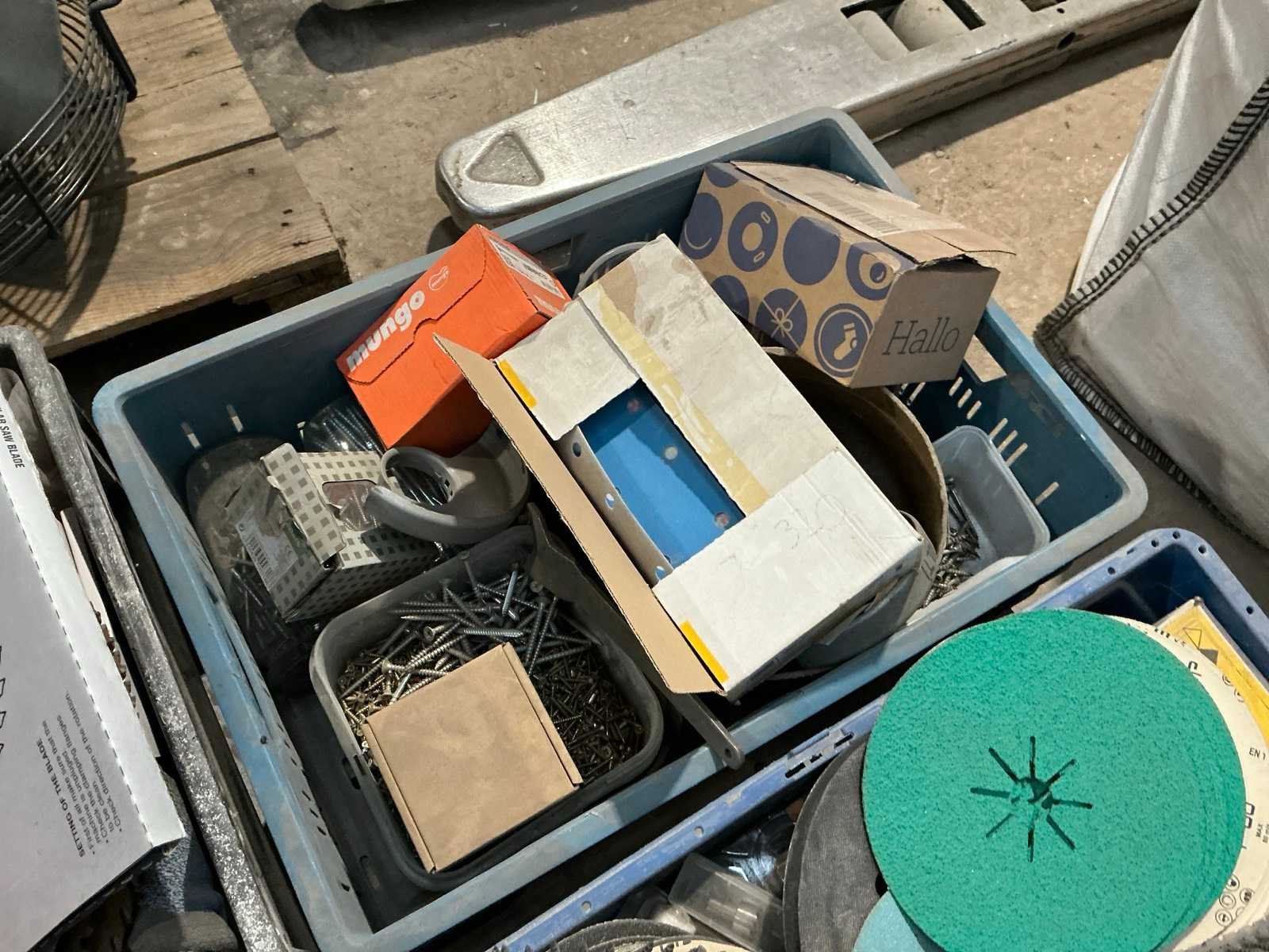 Bestaande uit: diverse ronde en rechthoekig schuurpapier, bankschroeven, zaagbladen, …