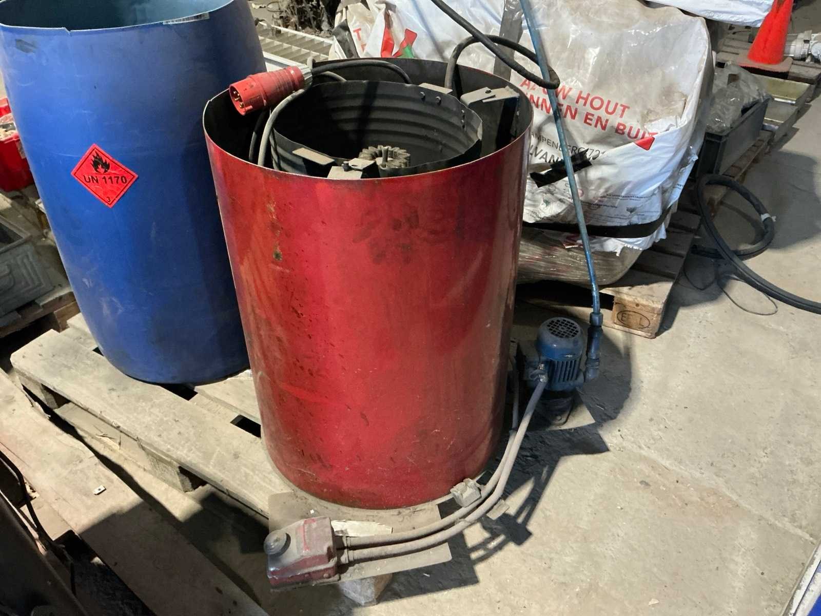 Compleet met kunststof ton capaciteit 200L Aansluiting: 380V Afmeting l: 580mm Afmeting b: 580mm Afmeting h: 760mm