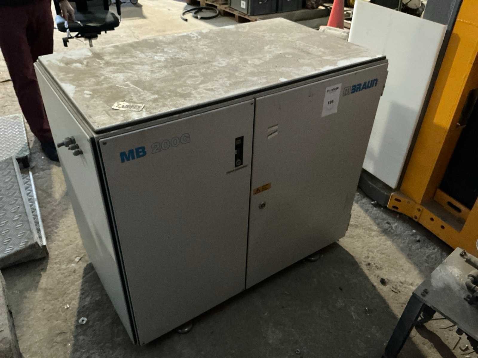 Merk: MBraun Type: MB200 G-K Bouwjaar: 2004 Aansluiting: 400V Totale afmeting L: 1050mm Totale afmeting Breedte: 600mm Totale afmeting Hoogte: 930mm