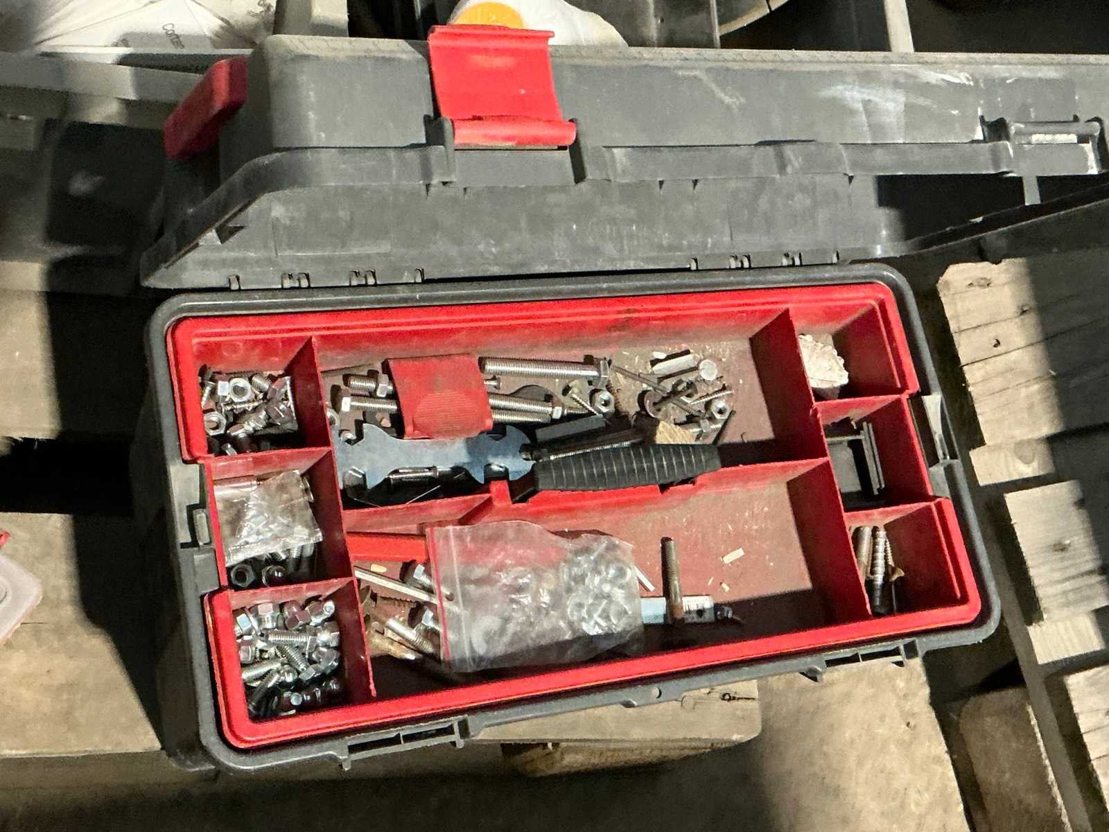Waaronder handzagen, hamer, siliconenspuit, veegborstels, gipskartonschroeven, zaagblad en enig divers bevestigingsmateriaal, Waaronder liggende in pvc gereedschapskoffer en in pvc opbergbakken, Liggende op 1 pallet Merk: Partij