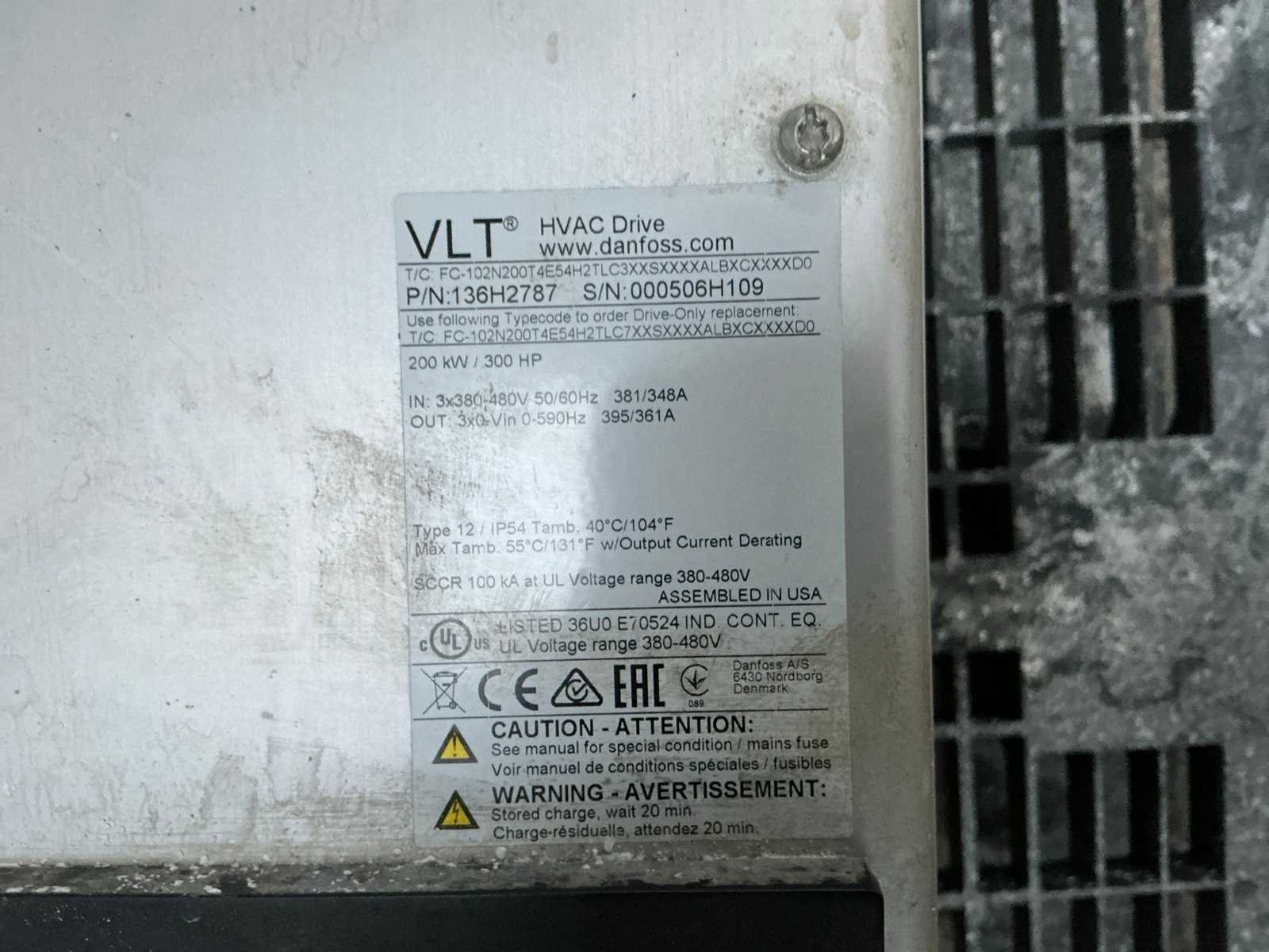 Merk: Danfos Model: VLT HVAC DRIVE Lengte: 38cm Breedte: 42cm Hoogte: 194cm