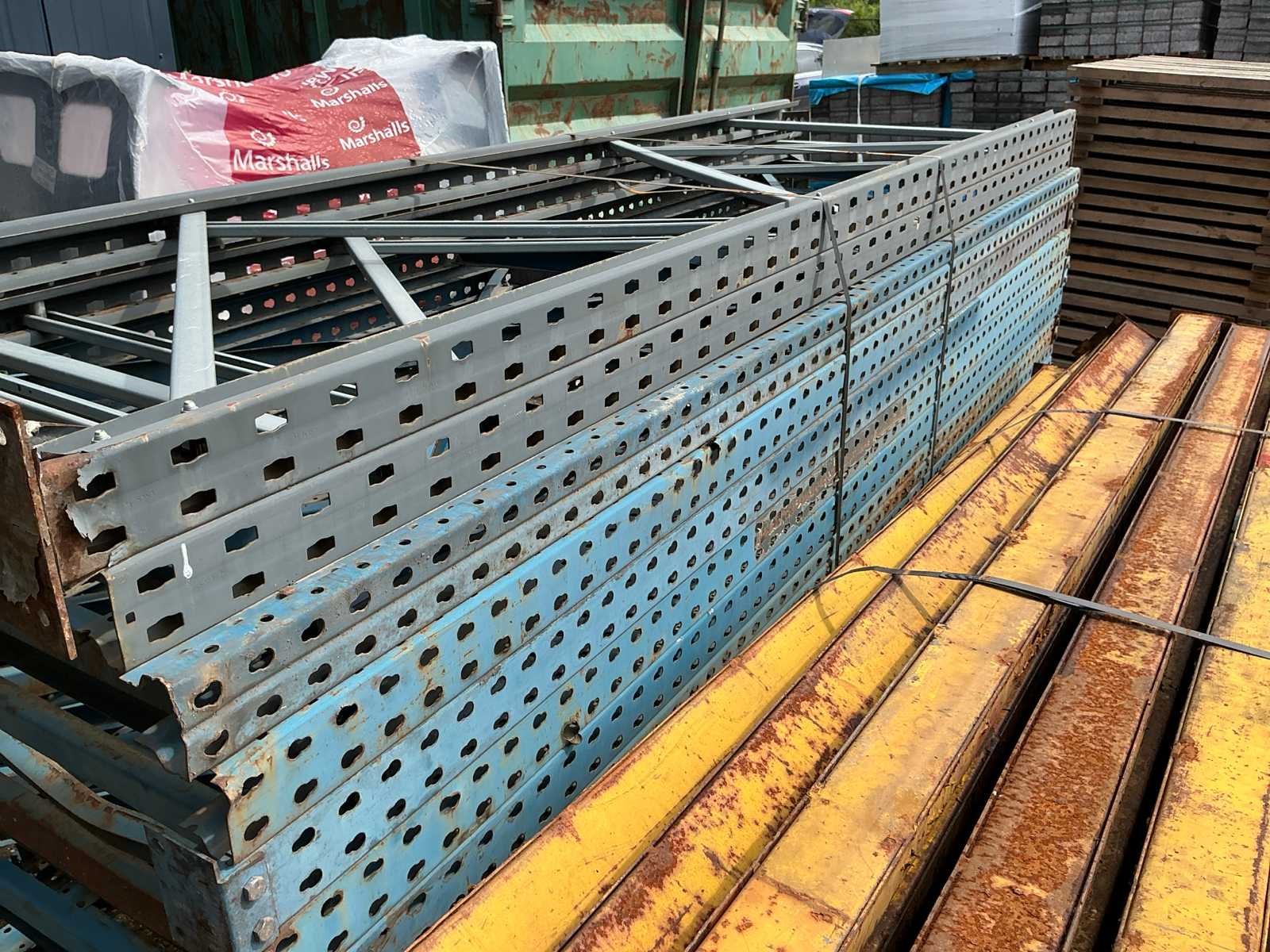 Bestaande uit 14 staanders 90xH300 cm (2 types) & partij liggers (2 types), 36 stuks 260cm en 23 stuks 270cm