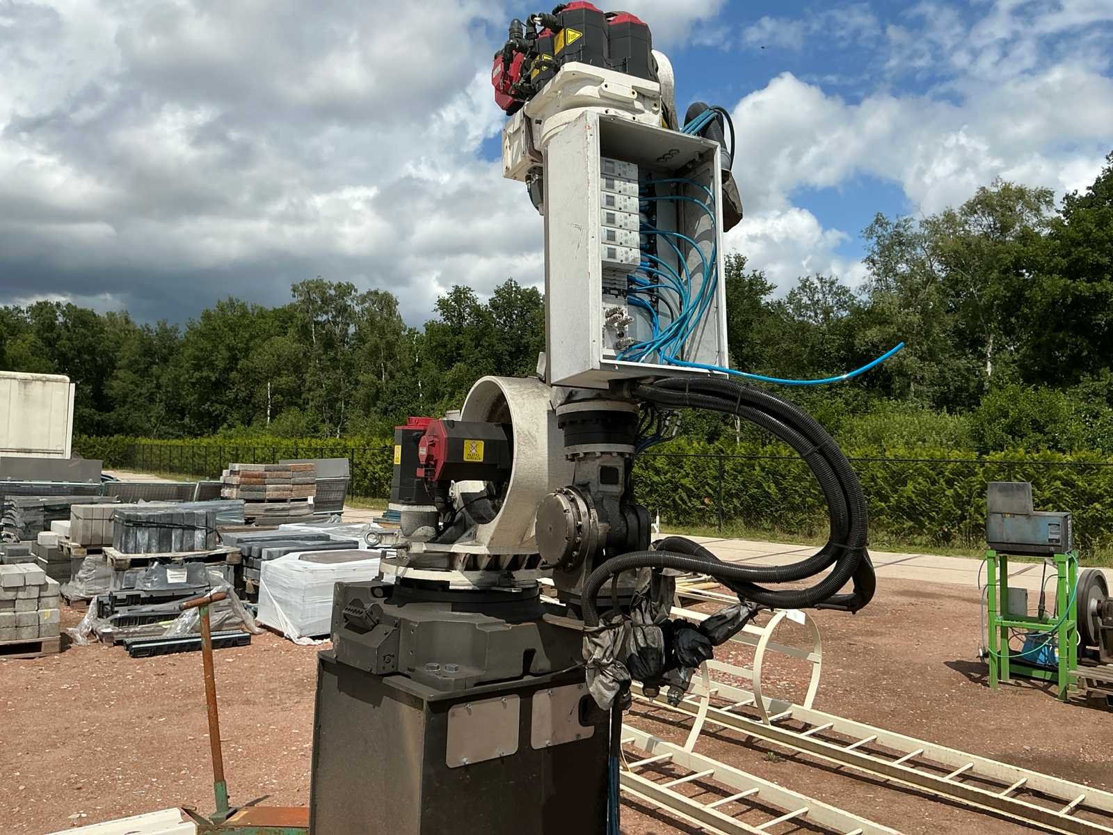 Gewicht 1210kg, zonder bedieningspaneel, op sokkel afmeting 90x90xH110cm. Merk: Fanuc Type product: R-2000ia/165f Bouwjaar: 2002 Lengte: 210cm Breedte: 85cm Hoogte: 195cm
