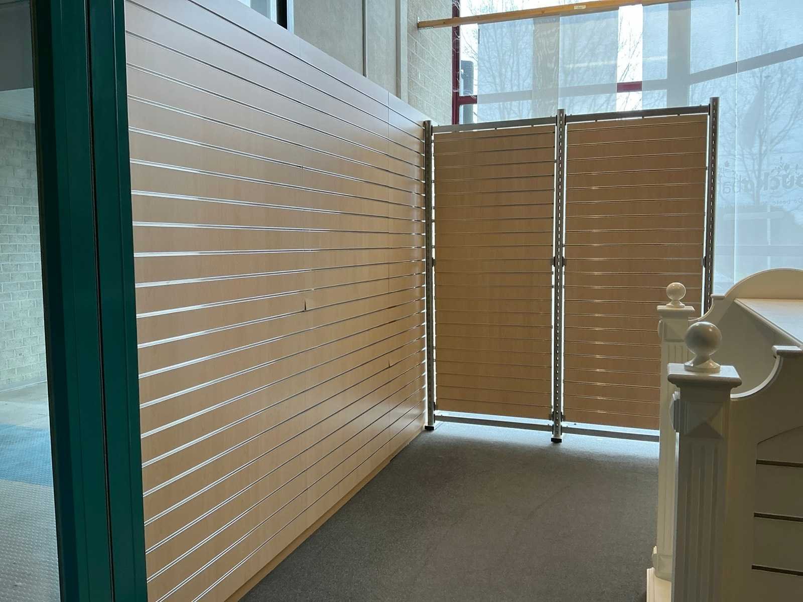 Circa 17 lopende meter in diverse hoogtes, 27 schabben, verrijdbare display, uitgezonderd genummerde kavels, dient door klant op een correcte wijze gedemonteerd te worden.
