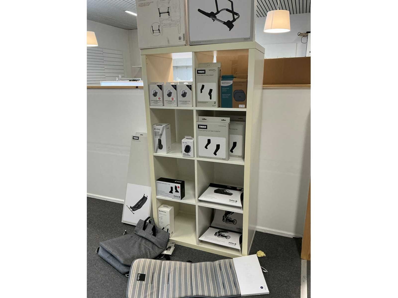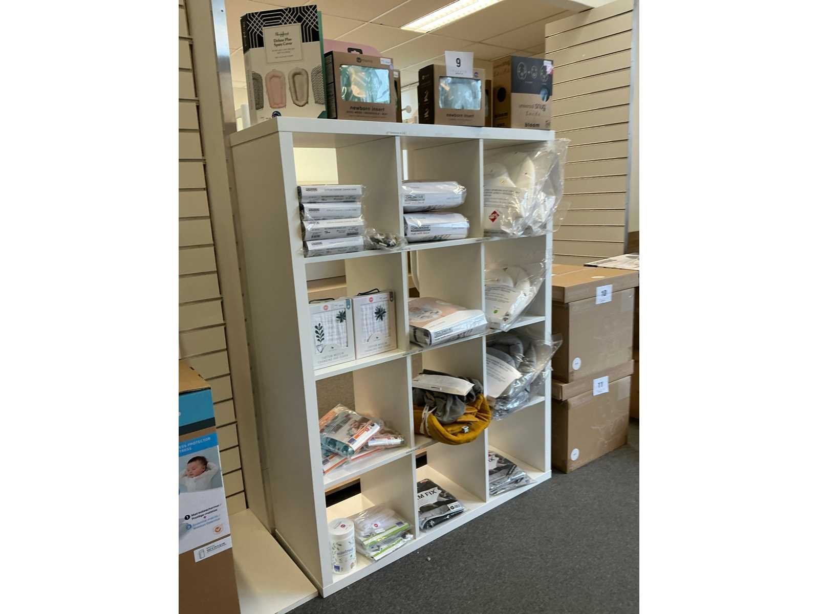 Waaronder 16-vakkenkast voorzien van 4deuren, afmeting circa 150 x 40 x 137cm, 3x open kast voorzien van 8vakken, afmeting circa 150 x 40 x 150 cm, open kast voorzien van 8 vakken, afmeting circa 76 x 40 x 1,47cm uitgezonderd genummerde kavels