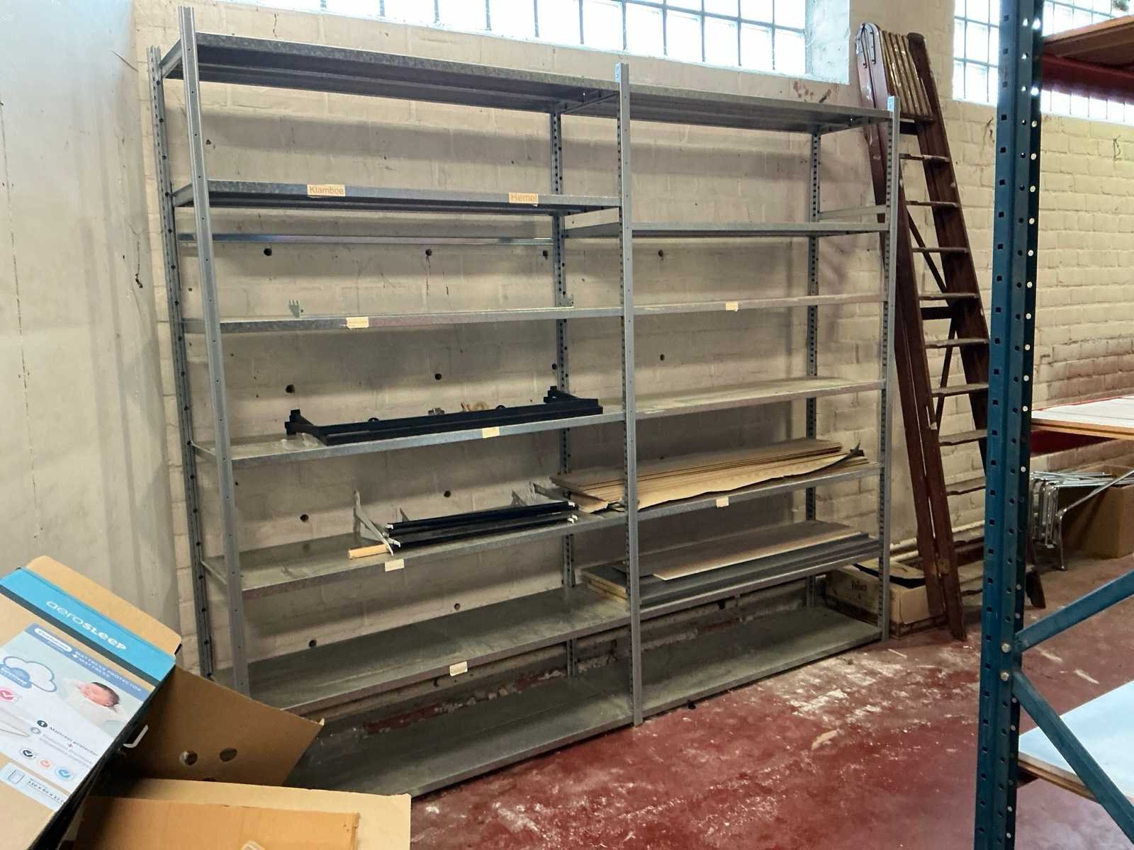 Waaronder afmeting circa 3,90 x 0,42 x 2,10 m bestaande uit 10 staanders en 42 legborden en 1,70 x 0,42 x 2,10 m bestaande uit 6 staanders en 28 legborden en 2,60 x 0,42 x 2,10 m bestaande uit 6 staanders en 28 legborden, dient door klant gedemonteerd te worden