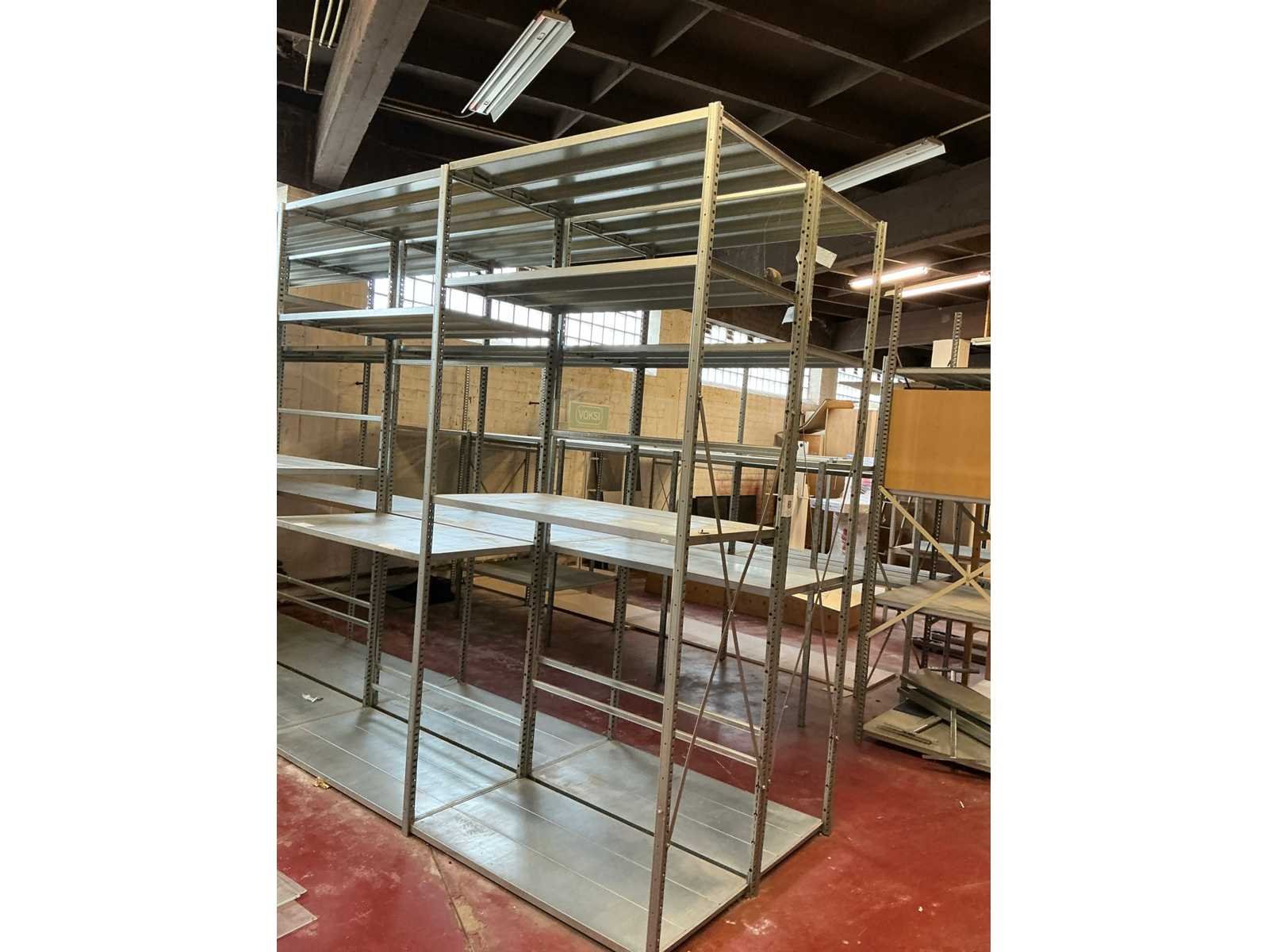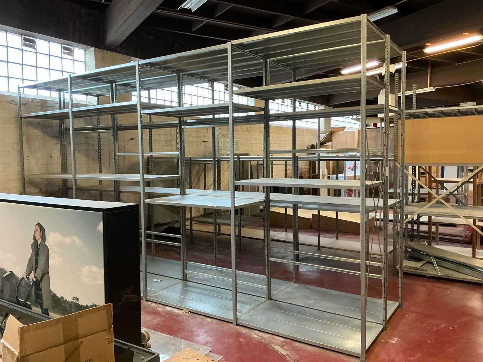 Afmeting circa 9,20 lopende meter bestaande uit 20 staanders met hoogte circa 2,50m en 32 legborden met afmeting circa 1,15 x 60 m