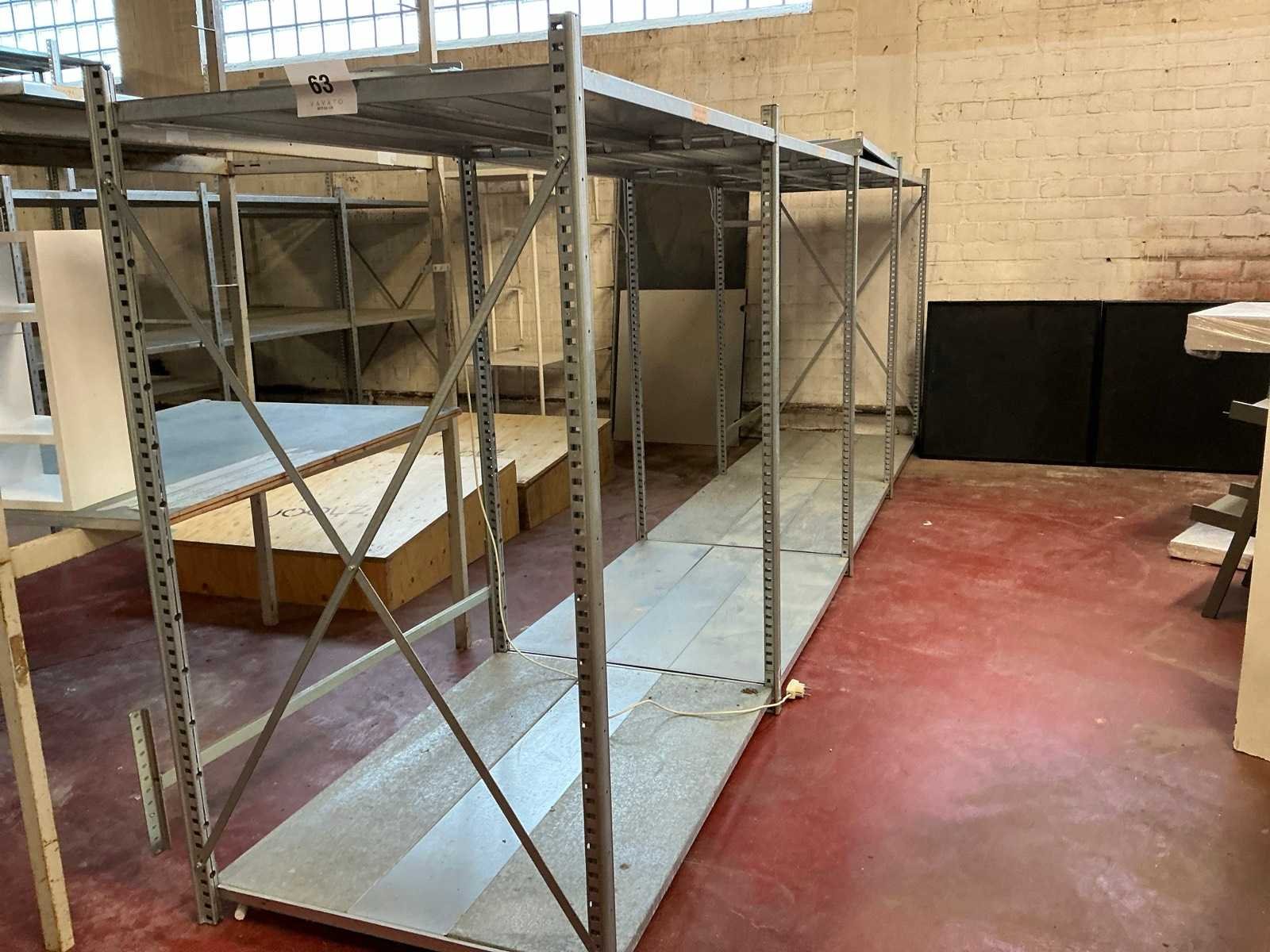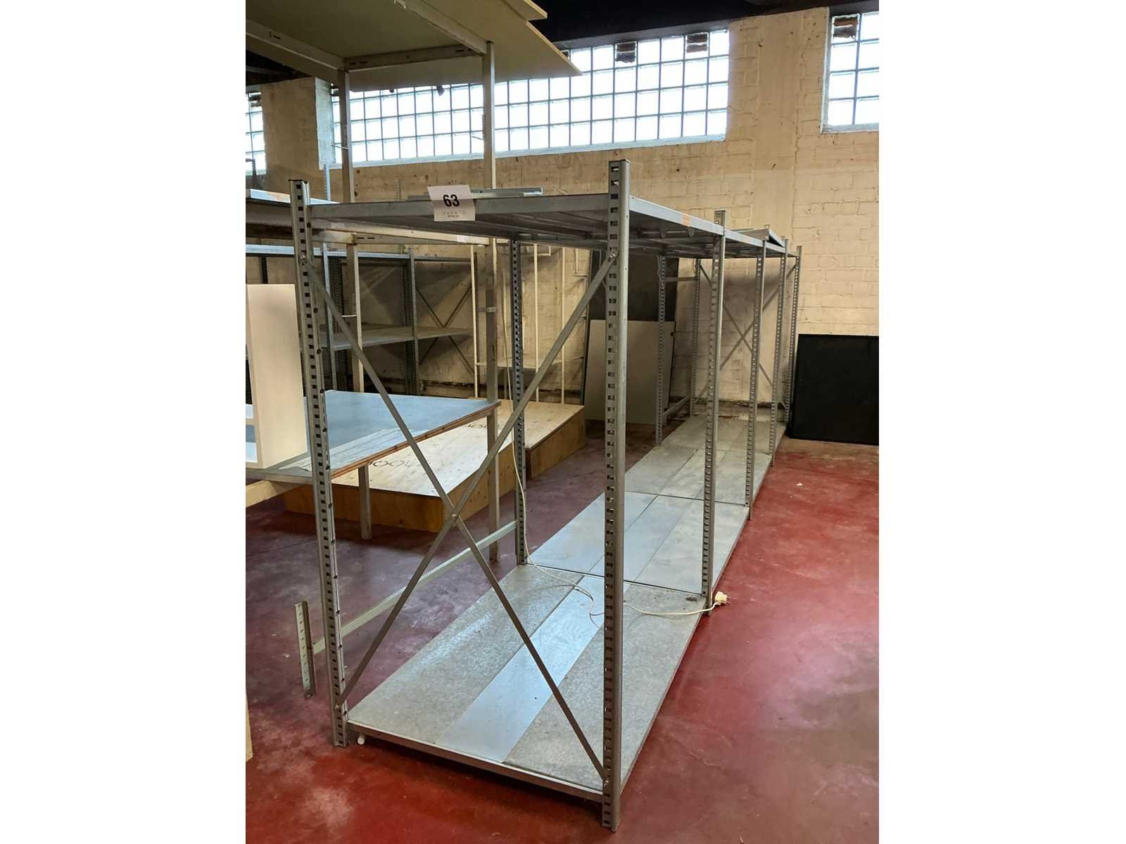 Afmeting circa 4,60 lopende meter bestaande uit 10 staanders waaronder met hoogte circa 1,50m en 9 legborden met afmeting circa 1,15 x 0,80m