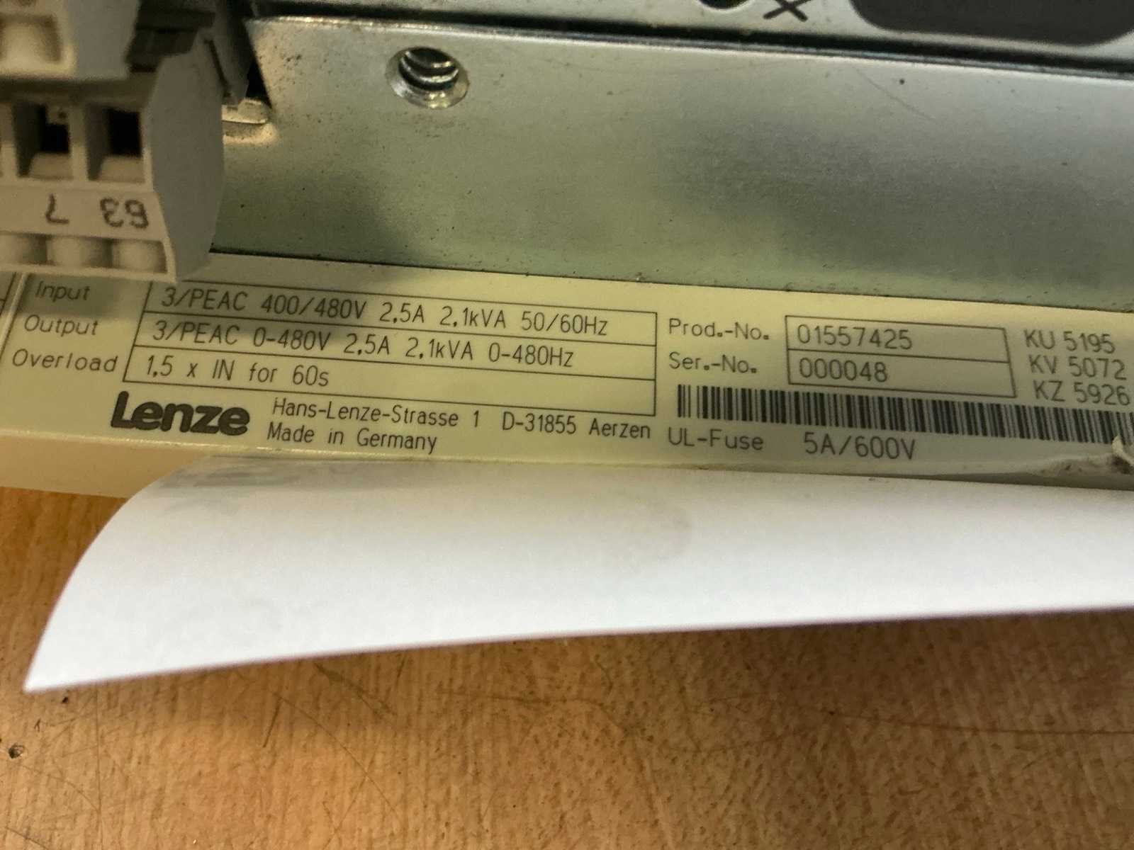 <Br> - Vermogen: 2,1 kVA. Merk: Lenze Product type: EVS9322-EP