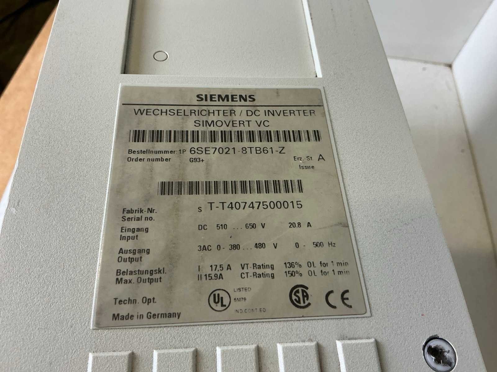 Input: 20,8A. Merk: Siemens Model: Simovert vc Product type: 6SE7021-8TB61-Z Digitaal: true