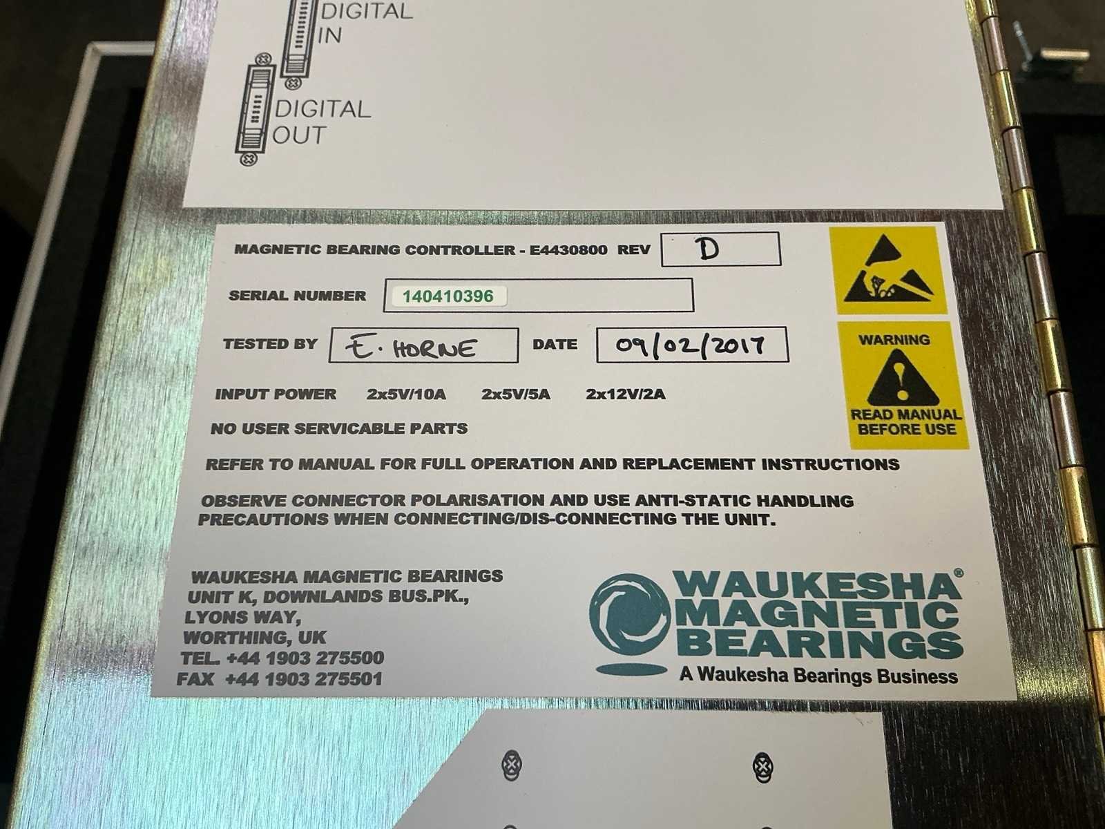 <Br> - Type: Magnetic Bearing Controller. - Model: E4430800 (Rev. D). Merk: Waukesha Magnetic Bearings