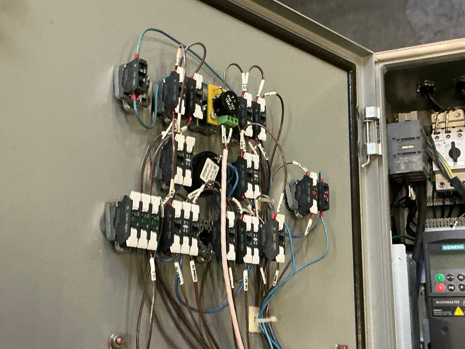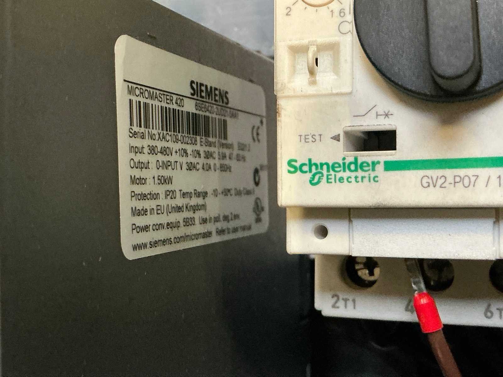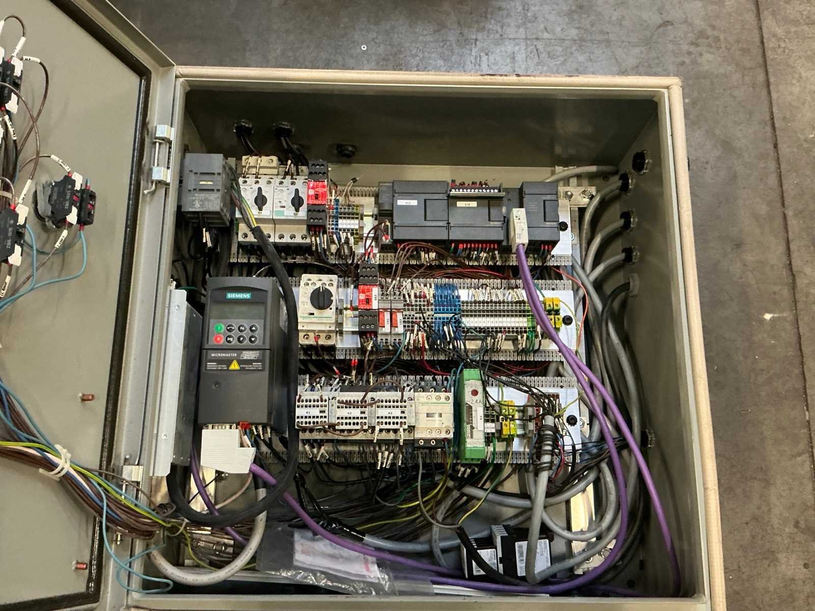 Voorzien van Siemens frequentieregelaar type micromaster420 vermogen 1,5KW, Siemens Simatic S7-200, Siemens Profibus-DP, Siemens motorbeveiligingsschakelaar, en diverse elektrische onderdelen. Totale afmeting L: 300mm Totale afmeting Breedte: 600mm Totale afmeting Hoogte: 600mm
