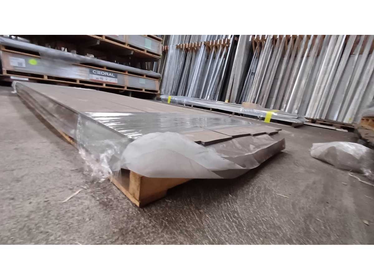 Einde reeks 24 stroken gevelbekleding sidings Gebruik 1,74st./m² No Merk: Cedral Type: Lap Wood Dikte: 186mm Eigen gewicht: 288kg Totale afmeting L: 3600mm Totale afmeting Breedte: 186mm Totale afmeting Hoogte: 12mm