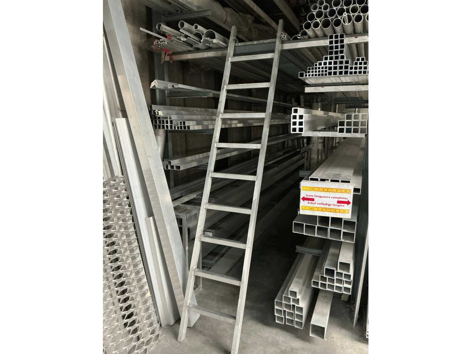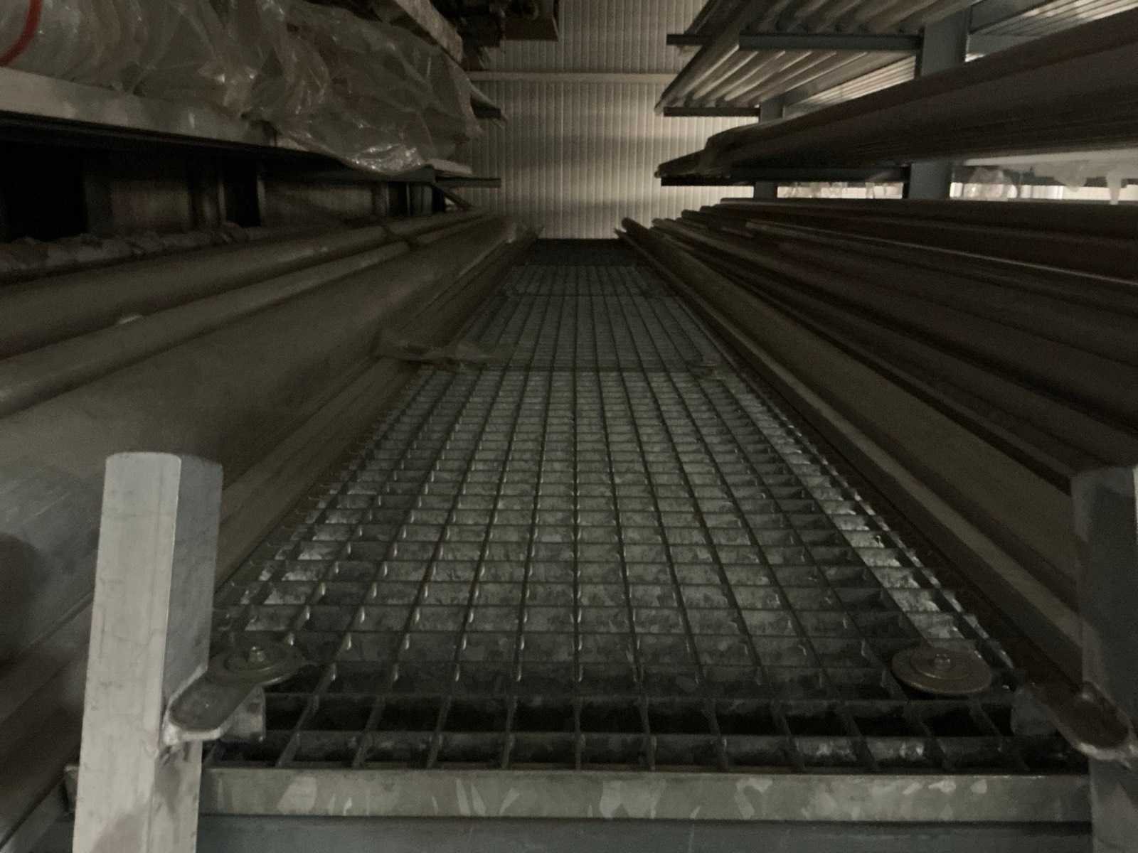 Voorzien van bordesrooster en trap, Zonder inhoud, rek is gelast aan poutrels, koper dient het rek te verwijderen dmv eigen gereedschap, zie foto’s Nee Aantal secties: 2 Aantal staanders: 3 Aantal liggers: 30 Geconstrueerd: true Totale afmeting L: 486cm Totale afmeting Breedte: 300cm Totale afmeting Hoogte: 430cm