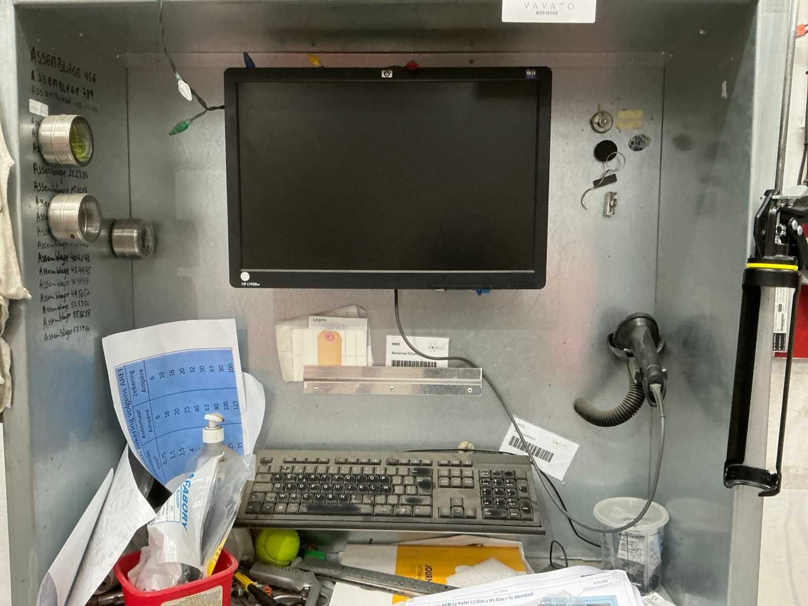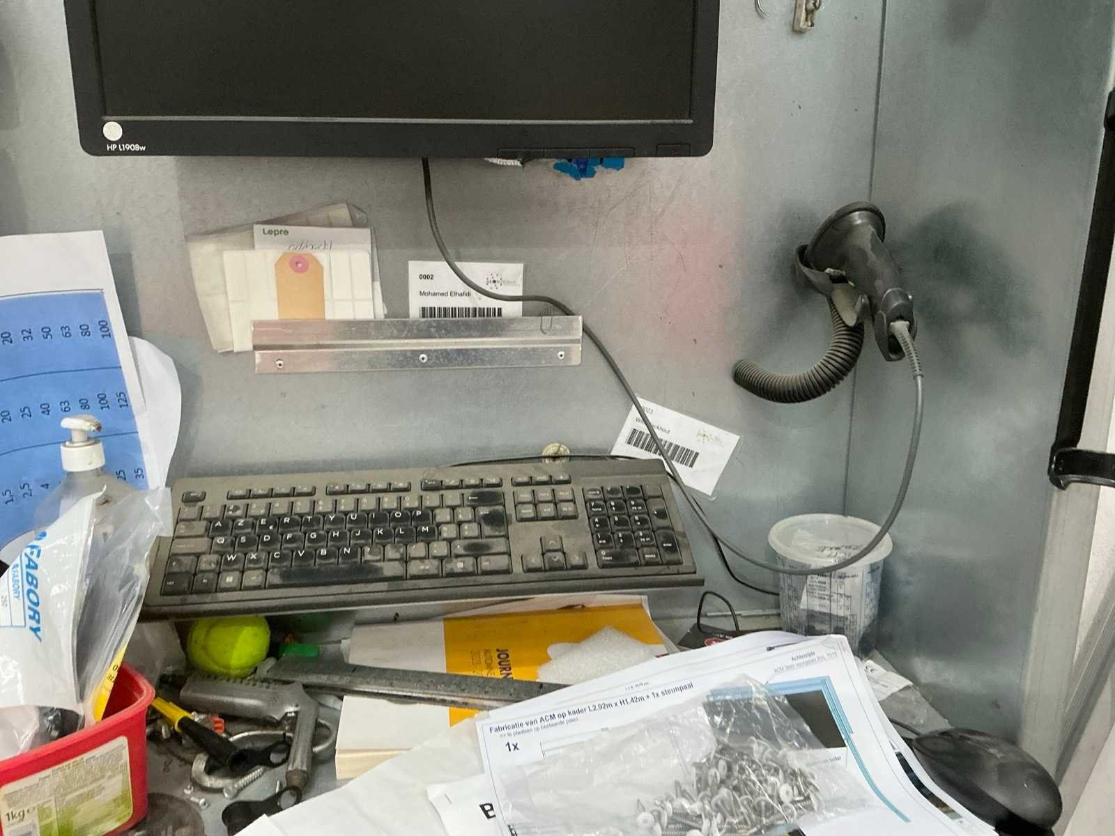 Voorzien van monitor HP, mini desktop HP, toetsenbord en muis, scanner SYMBOL compleet met wandkast Nee Afmeting l: 900mm Afmeting b: 300mm Afmeting h: 2000mm