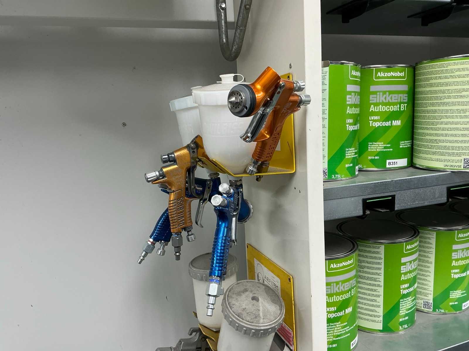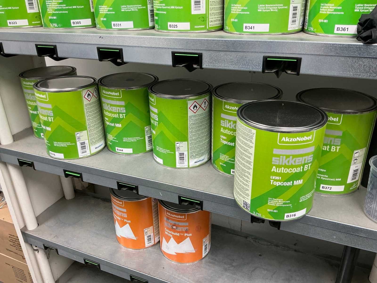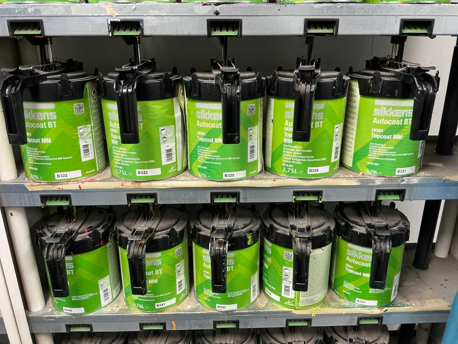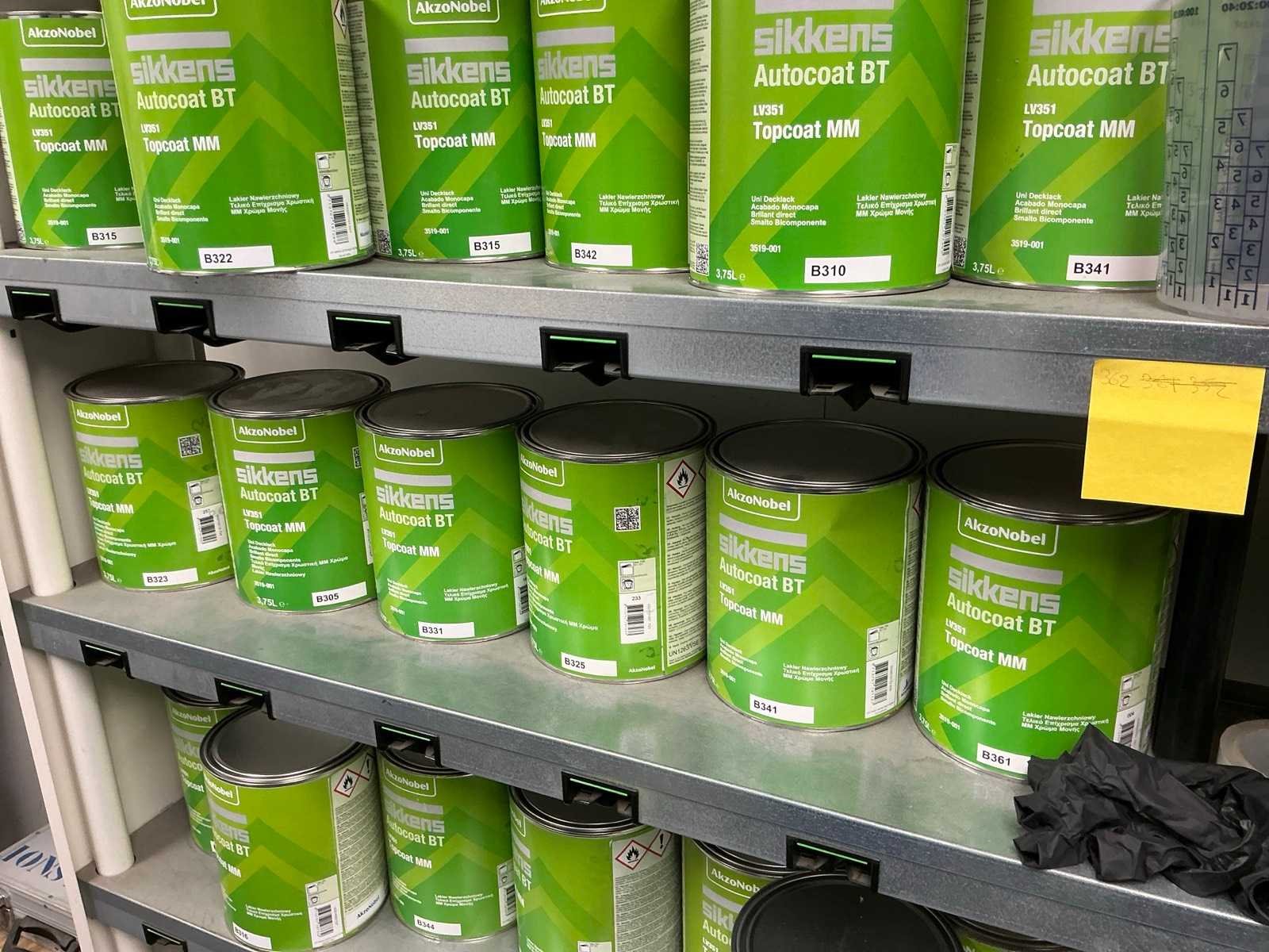 Compleet met 45 diverse potten Sikkens Topcoat, diverse types waaronder aangesproken en vol en 5 diverse verfspuitpistolen waaronder 4x Prolite en 2x Sata Nee Merk: Sikkens AkzoNobel Totale afmeting L: 1150mm Totale afmeting Breedte: 250mm Totale afmeting Hoogte: 1930mm