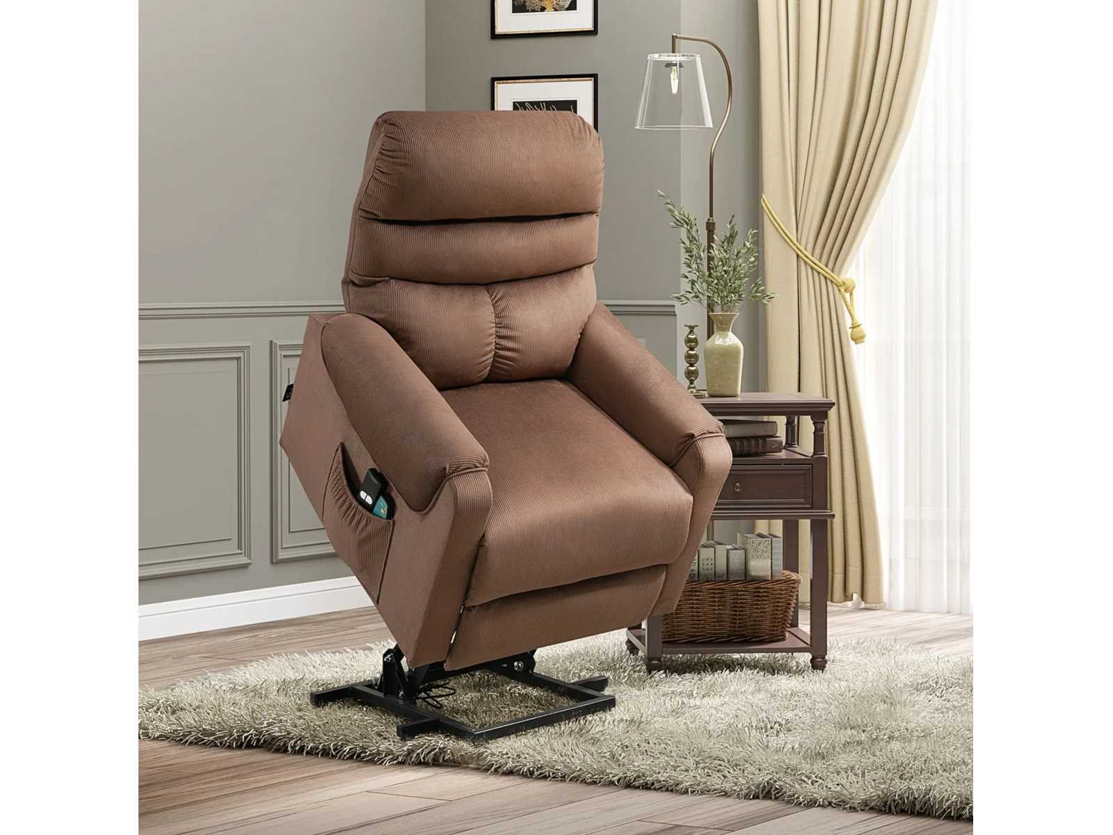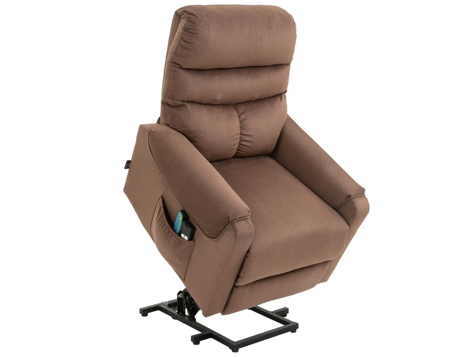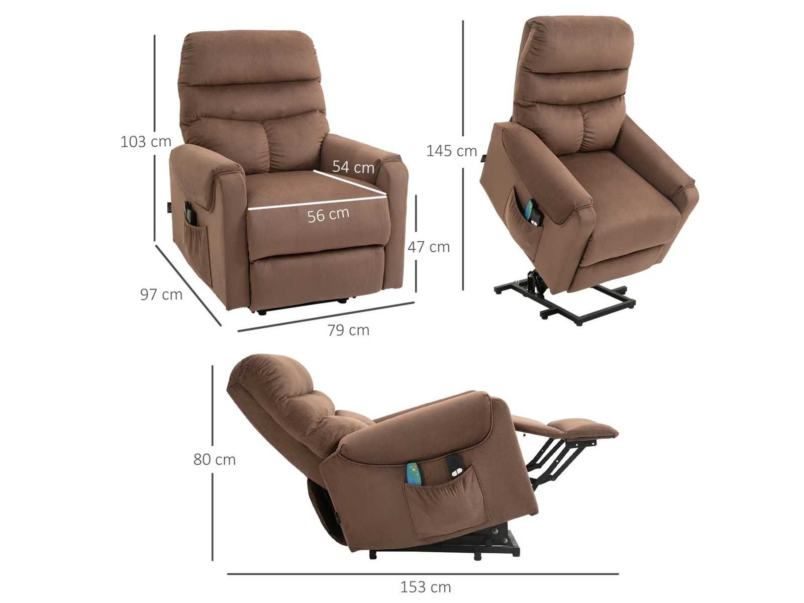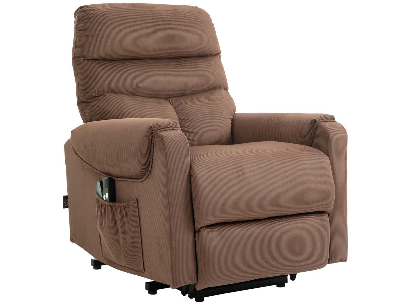 Specificaties: - Kleur: Bruin - Materiaal: polyester stof, metaal - Totale afmetingen (staand): 79B x 97D x 103H cm - Afmetingen (langwerpig): 79B x 153D x 80H cm - Zitafmetingen: 56B x 54D x 47H cm - Vullingdikte: 14 cm - Ingangsspanning: 100-240V-50/60Hz - Uitgangsspanning: 12V/14,4W - Lengte van de stroomkabel: 1,75 m - Laadvermogen: 150 kg Non