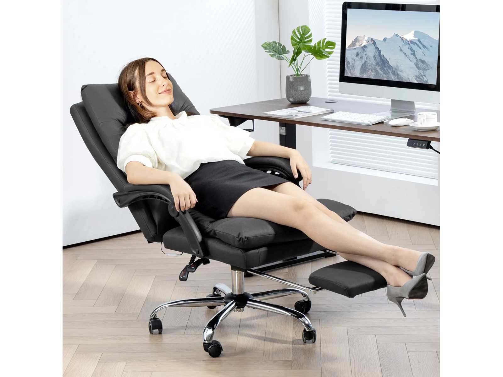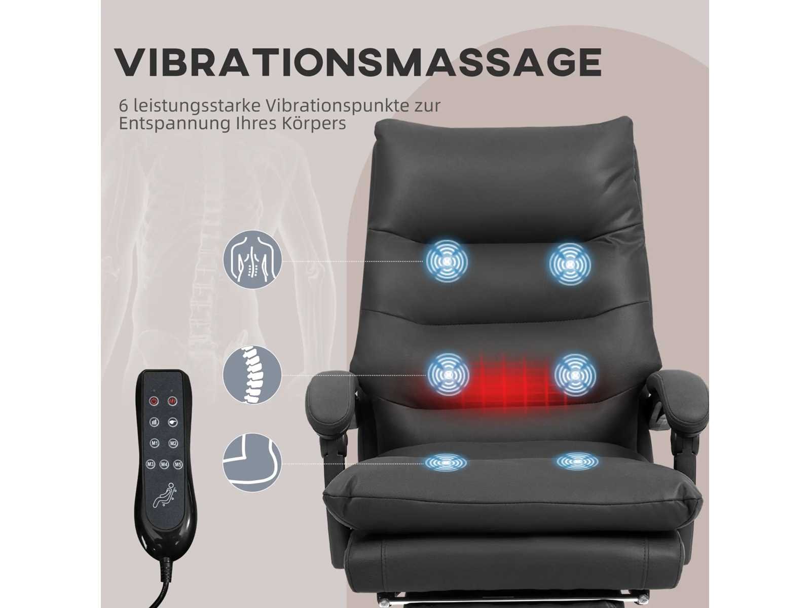 Technische gegevens: ? Kleur: Zwart ? Materialen: Microvezel (100% polyester), schuim, meerlaagse plaat, staal ? Totale afmetingen: 65 cm (B) x 72 cm (D) x 109-117 cm (H) ? Afmetingen van de ligstoel: 63 cm (B) x 153 cm (D) x 98-106 cm (H) ? Zitafmetingen: 57 cm (breedte) x 45 cm (diepte) ? Zithoogte: 55-63 cm ? Hoogte van de armleuningen ten opzichte van de zitting: 17 cm ? Rugleuningafmetingen: 73 cm (breedte) x 51 cm (diepte) ? Zitdikte: 18 cm ? Rugdikte: 17 cm ? Kabellengte: 1,8 m ? Laadvermogen: 120 kg ? Ingang: 100-240 V, 50/60 Hz Non