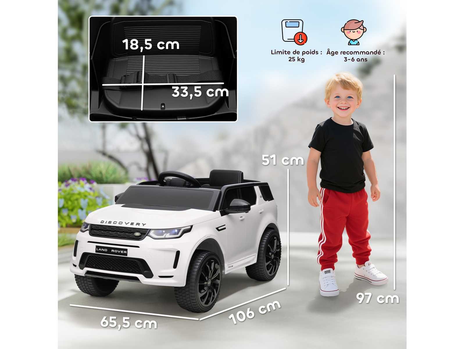 Specificaties: - Kleur: wit - Materialen: plastic, metaal - Sun. totaal: 106L x 65,5B x 51H cm - Sun. Zitplaats: 33,5B x 18,5D cm - Zithoogte: 15 cm (vanaf de vloer) - Afstandsbediening: 15 m - Wieldiameter: Ø 23 cm - Batterij: 12V 4,5AH - Motor: 2 x 12V - Oplaadtijd: 8-10 uur (eerste), 8-12 uur (regulier) - Bedrijfstijd: 60 minuten - Snelheid: 3-5 km/u - Sun. Kenteken: 13,8L x 2,5L cm - Aanbevolen maximale belasting: 25 kg - Geschikte/geschikte leeftijd: 3-6 jaar - Zitcapaciteit: 1 passagier - Kwalificatie: EN71-1-2-3, EN62115 Non