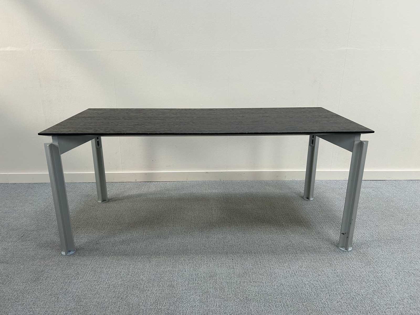 Vergadertafel / Bureau (Bulo H2o) met zwart massief blad met soft edge afwerking en Volaluminium poten. Afmetingen: 180 × 80 cm. Strak en professioneel ontwerp by Bataille en Ibens. geschikt voor kantoor- of vergaderruimte Gebruikte staat met lichte gebruikssporen. Nee Merk: BULO Type: H2o Model: Massief Kleur: Zwart Gewicht: 80kg Lengte: 180cm Breedte: 80cm Hoogte: 74cm Materiaal: melamine