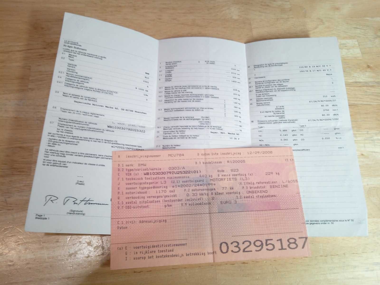 Inschrijvingsbewijs aanwezig, gelijkvormigheidsattest kilometerstand niet afleesbaar. Schade moto Nee Merk: bmw Model: r 1200 gs Chassisnummer: WB10303079ZU25322 Cilinderinhoud: 1200cc Datum eerste toelating: 12/09/2008 Vermogen (kW): 77kW Boorddocumenten aanwezig?: true Aantal sleutels: 1 Startinformatie: Start niet, accu leeg Bouwjaar: 2008