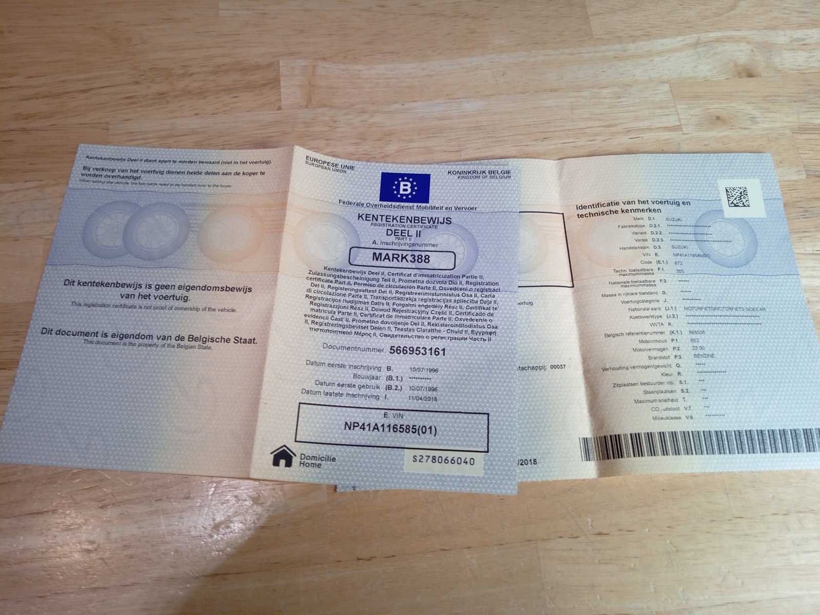 Inschrijvingsbewijs aanwezig, gelijkvormigheidsattest niet aanwezig Opmerking: Moto start niet - Werking niet gekend restauratieproject .Staat al 2 jaar stil + lichte schade aan zadel. Nee Merk: suzuki Model: Savage Chassisnummer: NP41A116585 Cilinderinhoud: 650cc Datum eerste toelating: 10/07/1996 Vermogen (kW): 23kW Afgelezen kilometerstand: 35450km Aantal sleutels: 1 Boorddocumenten aanwezig?: true Startinformatie: Start niet. accu vervangen Bouwjaar: 1996