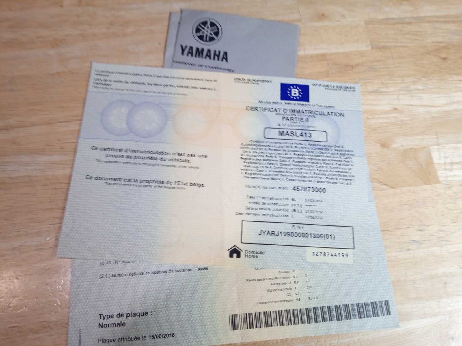 Inschrijvingsbewijs deel 1 en 2 aanwezig, gelijkvormigheidsattest aanwezig .Lichte schade aan tank en kuip Nee Merk: yamaha Model: xj6f Chassisnummer: JYARJ199000001306 Cilinderinhoud: 600cc Datum eerste toelating: 21/03/2014 Vermogen (kW): 57kW Afgelezen kilometerstand: 38953km Boorddocumenten aanwezig?: true Aantal sleutels: 1 Startinformatie: JA Bouwjaar: 2014